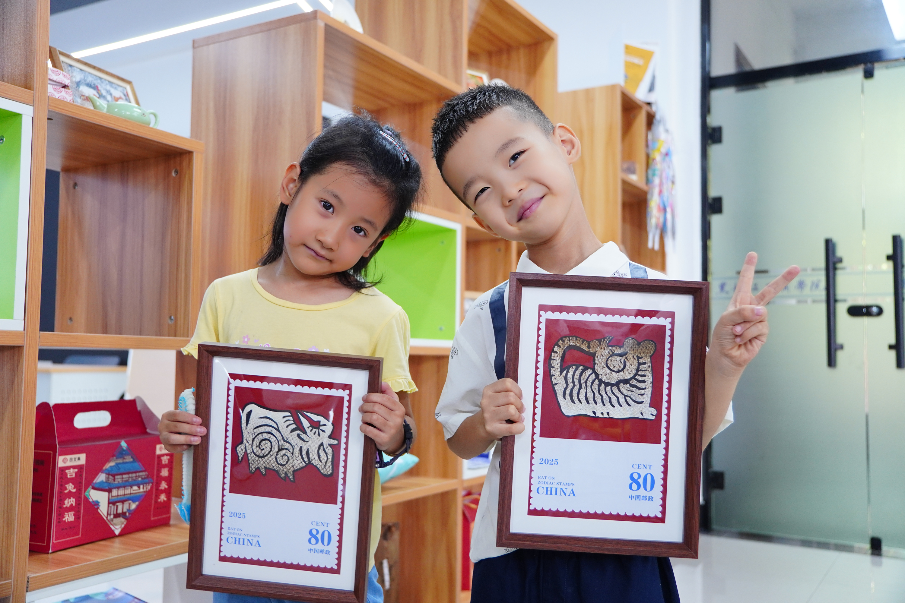 当带着天然鳞纹、质如蝉翼的鱼皮递到孩子们手中时,一双双好奇的眼睛瞬间被点亮。艺术与传媒学院的曹凯老师并未急于演示技法,而是将一门古老技艺背后的民族史诗娓娓道来——从松花江畔的渔猎生活,到图腾崇拜的神秘美感,龙江地域文化的独特魅力,在孩子们心中播下了第一颗种子。随后,大家握画笔,将心中最斑斓的梦,描绘在这古老的“纸张”上。可爱的动物、鲜艳的花草、美丽的家园……古老的技艺被赋予了天马行空的童趣想象,非遗传承的另一颗种子,也在艺术的交融中悄然生根。