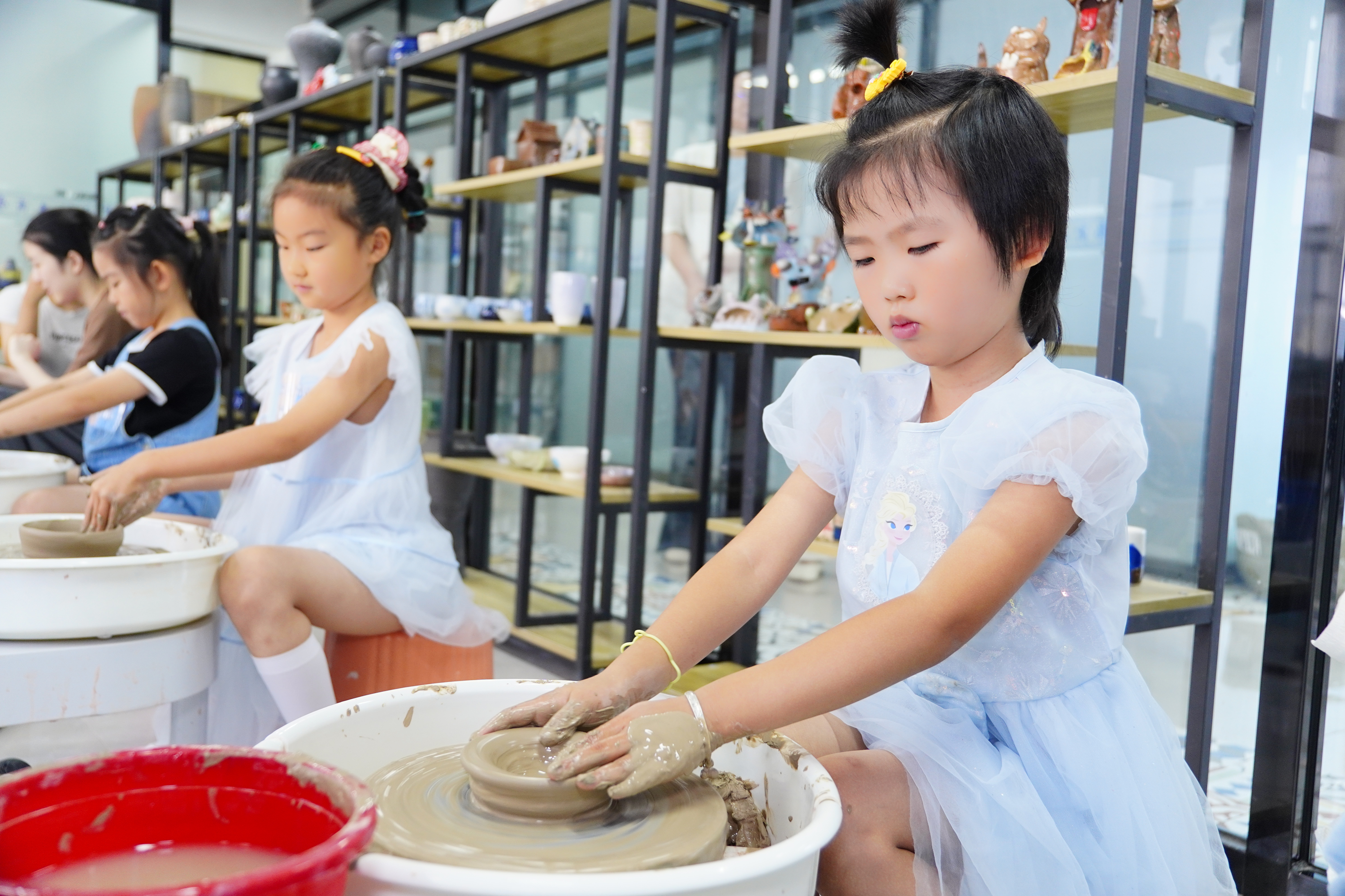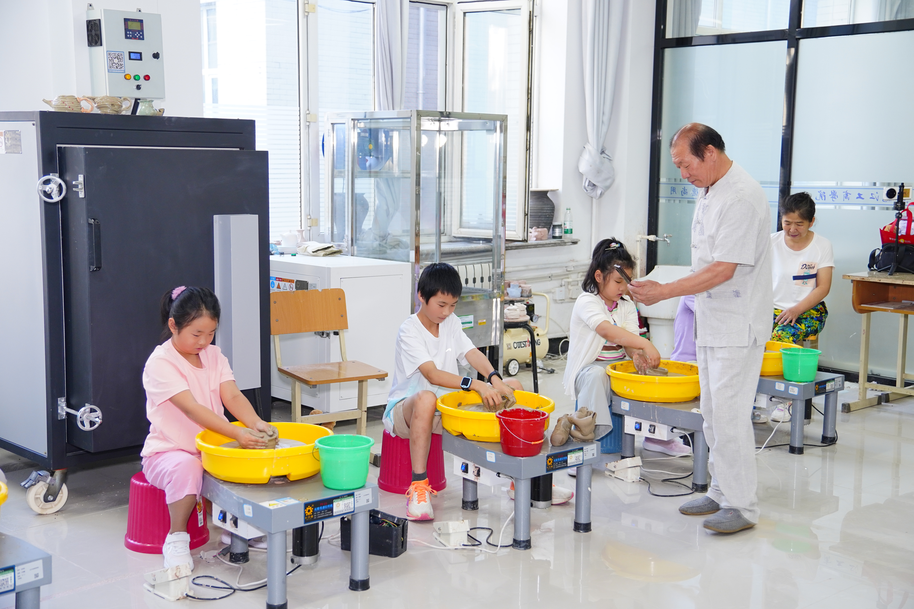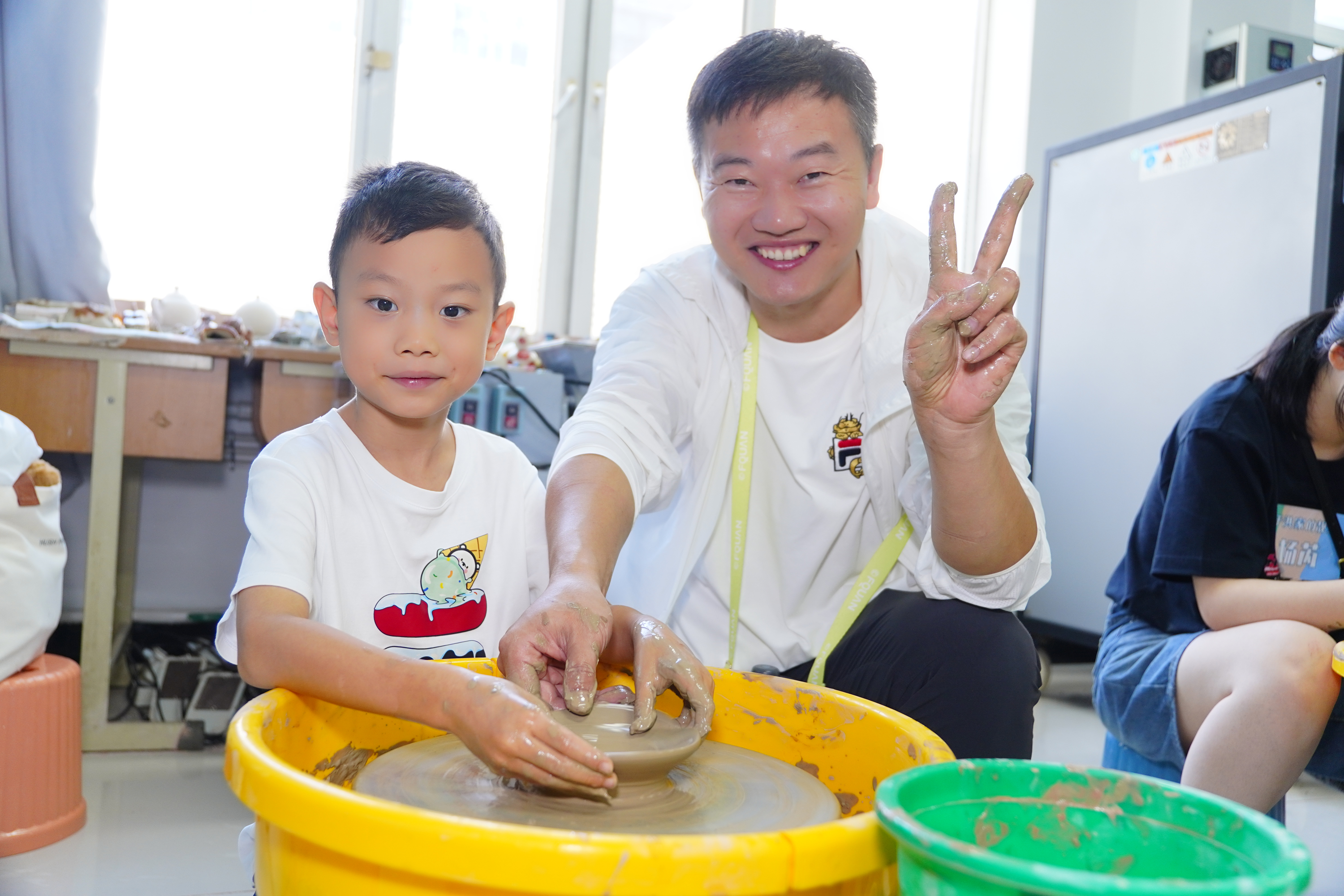 “手要稳,心要静,去感受泥土的呼吸。”在现代黑陶守艺人李春老师的耐心引导下,孩子们开启了与国家级非物质文化遗产——黑陶的亲密接触。从定中心、开口到拔高、塑形,李春老师手把手地传授着拉坯的基本手法。孩子们全神贯注,一捧湿润的泥土,在他们稚嫩而专注的手中,渐渐“生长”为质朴的碗坯或憨态可掬的小杯。这趟奇妙的“玩泥巴”之旅,孩子们享受了动手的乐趣,更亲身体验到从无到有的创造之美、劳动之乐,让“匠心”二字变得真切可感。