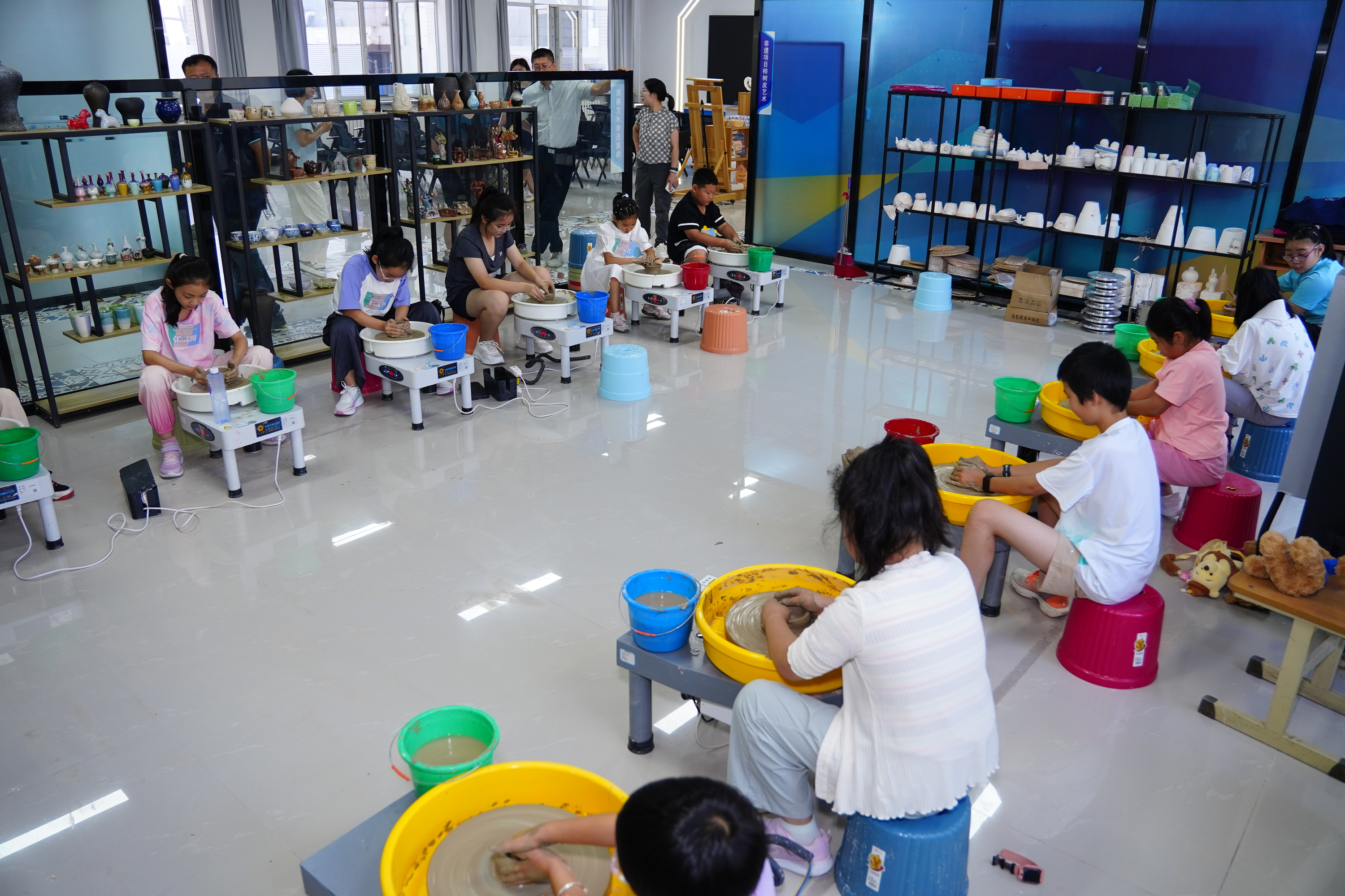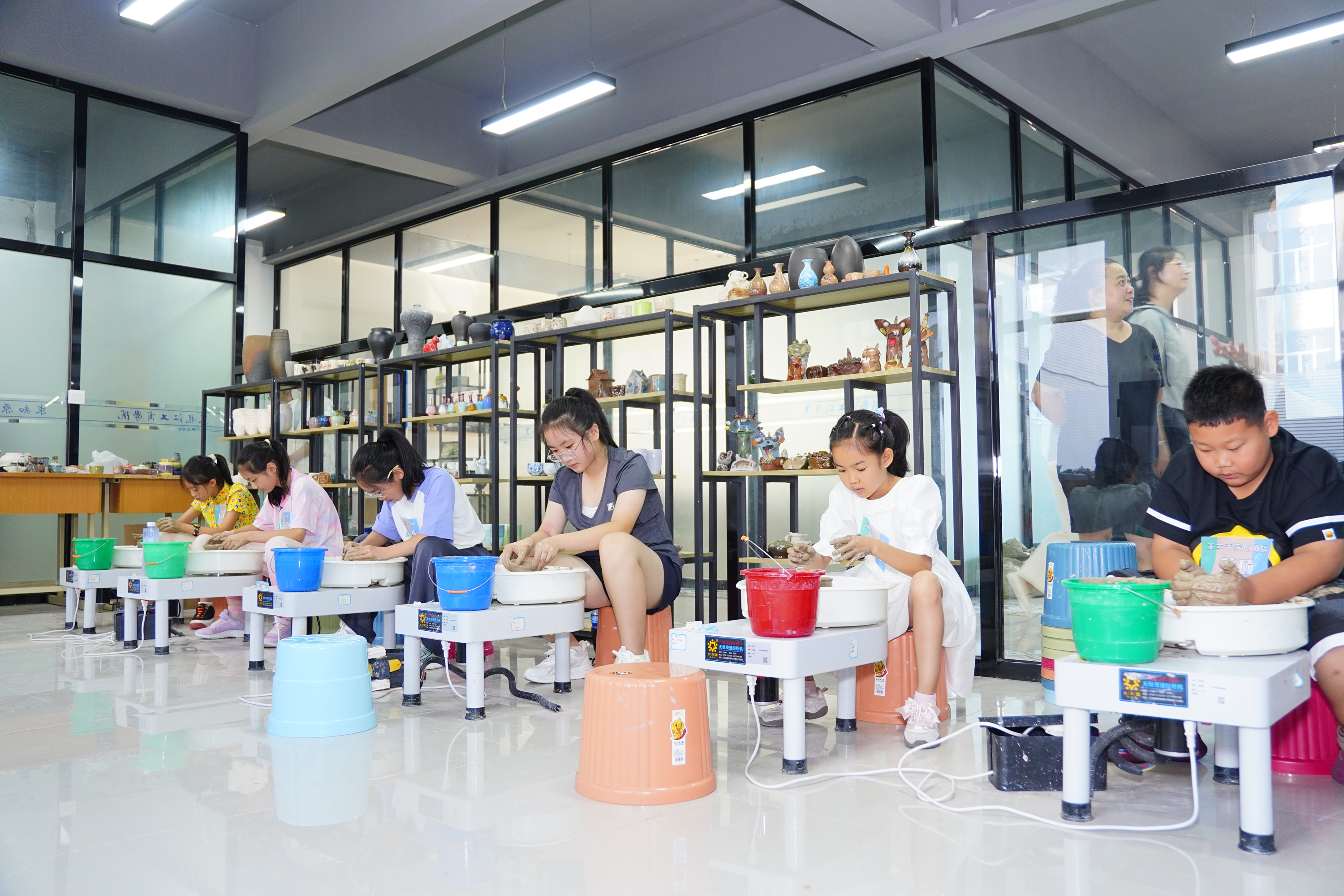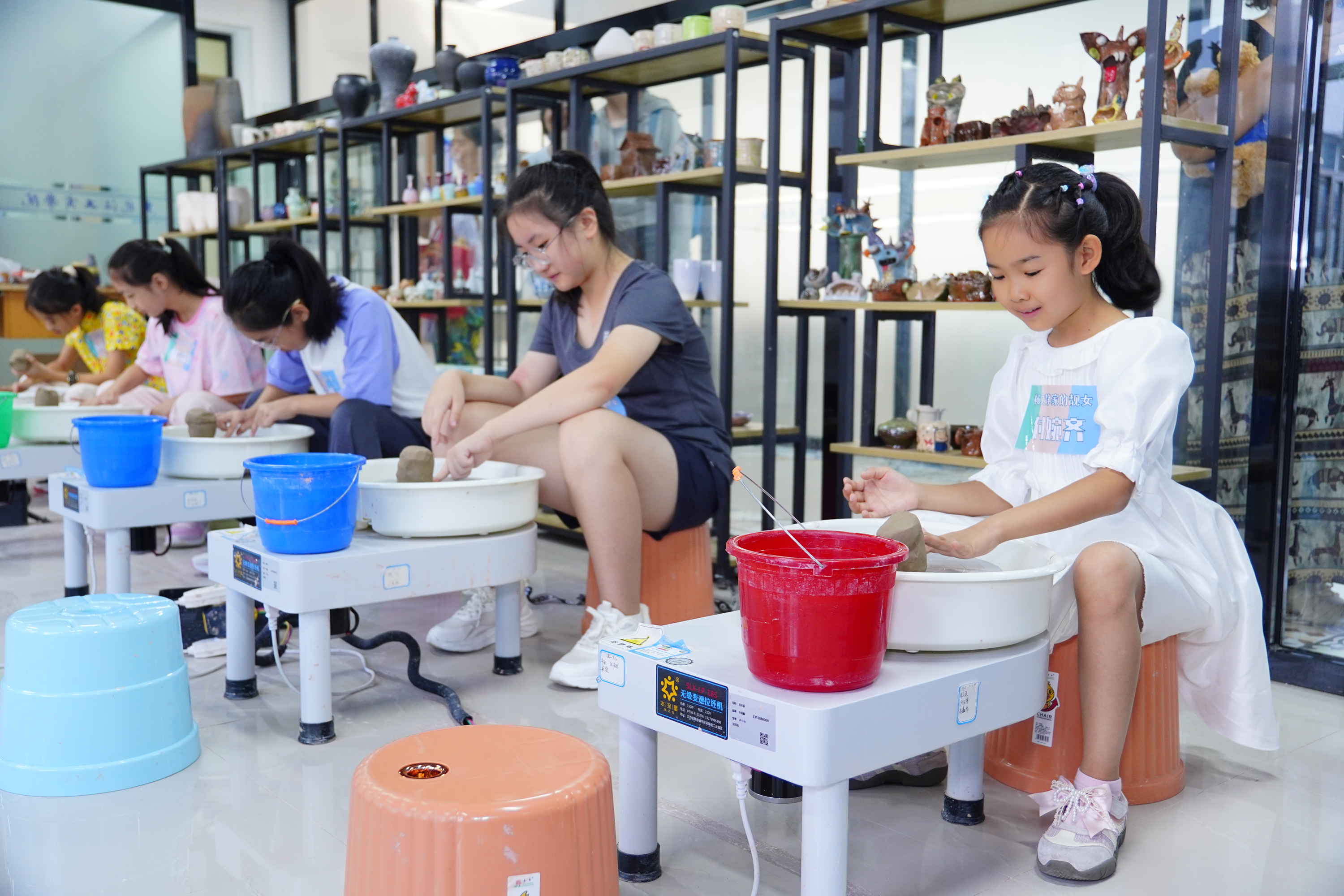 “手要稳,心要静,去感受泥土的呼吸。”在现代黑陶守艺人李春老师的耐心引导下,孩子们开启了与国家级非物质文化遗产——黑陶的亲密接触。从定中心、开口到拔高、塑形,李春老师手把手地传授着拉坯的基本手法。孩子们全神贯注,一捧湿润的泥土,在他们稚嫩而专注的手中,渐渐“生长”为质朴的碗坯或憨态可掬的小杯。这趟奇妙的“玩泥巴”之旅,孩子们享受了动手的乐趣,更亲身体验到从无到有的创造之美、劳动之乐,让“匠心”二字变得真切可感。