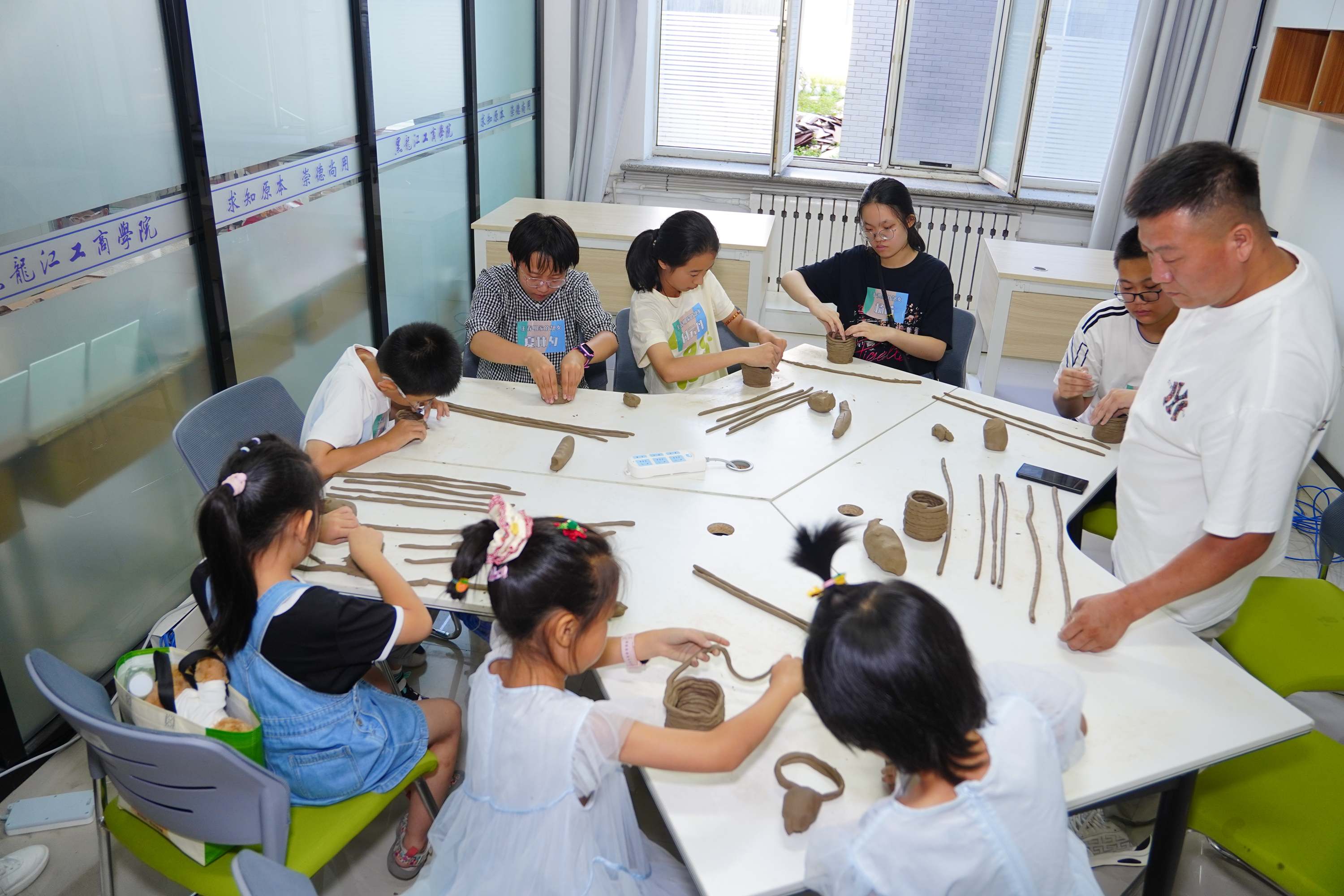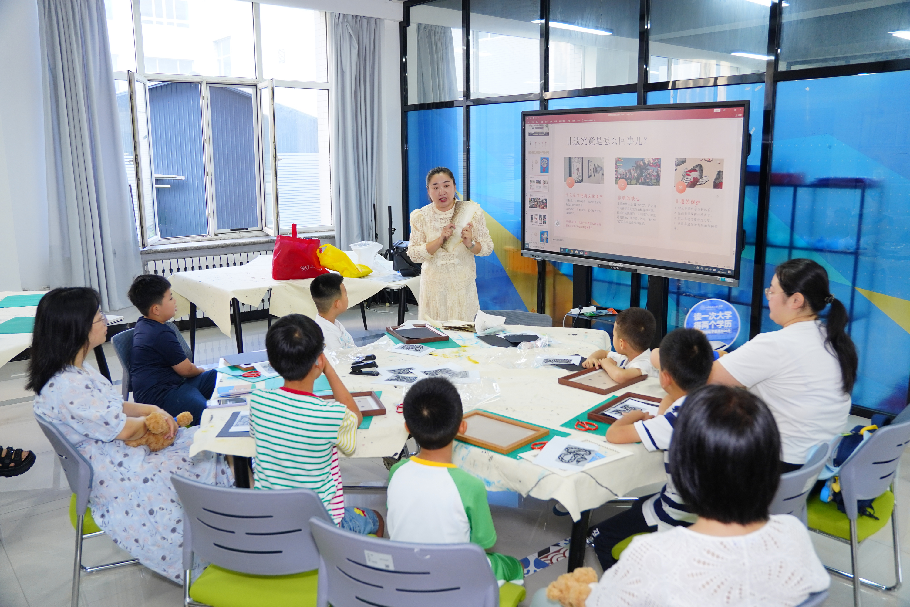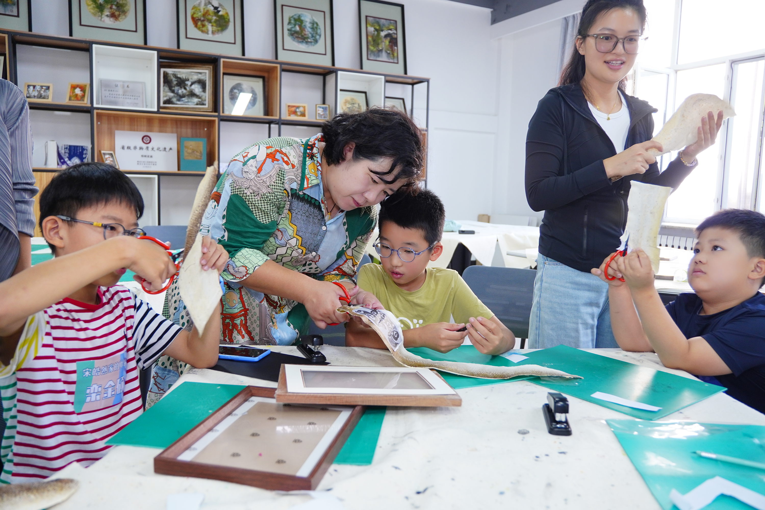 八月的风,带着初秋的清朗,拂过绿意盎然的校园。8月15日,校工会在松北校区文创中心举办“校园传匠心 萌娃探非遗”主题教职工亲子嘉年华。孩子们在沉浸式体验鱼皮画制作、黑陶制作中亲近传统艺术,在趣味亲子运动中释放天性,让暑期宁静的校园,涌动着童趣和创意。