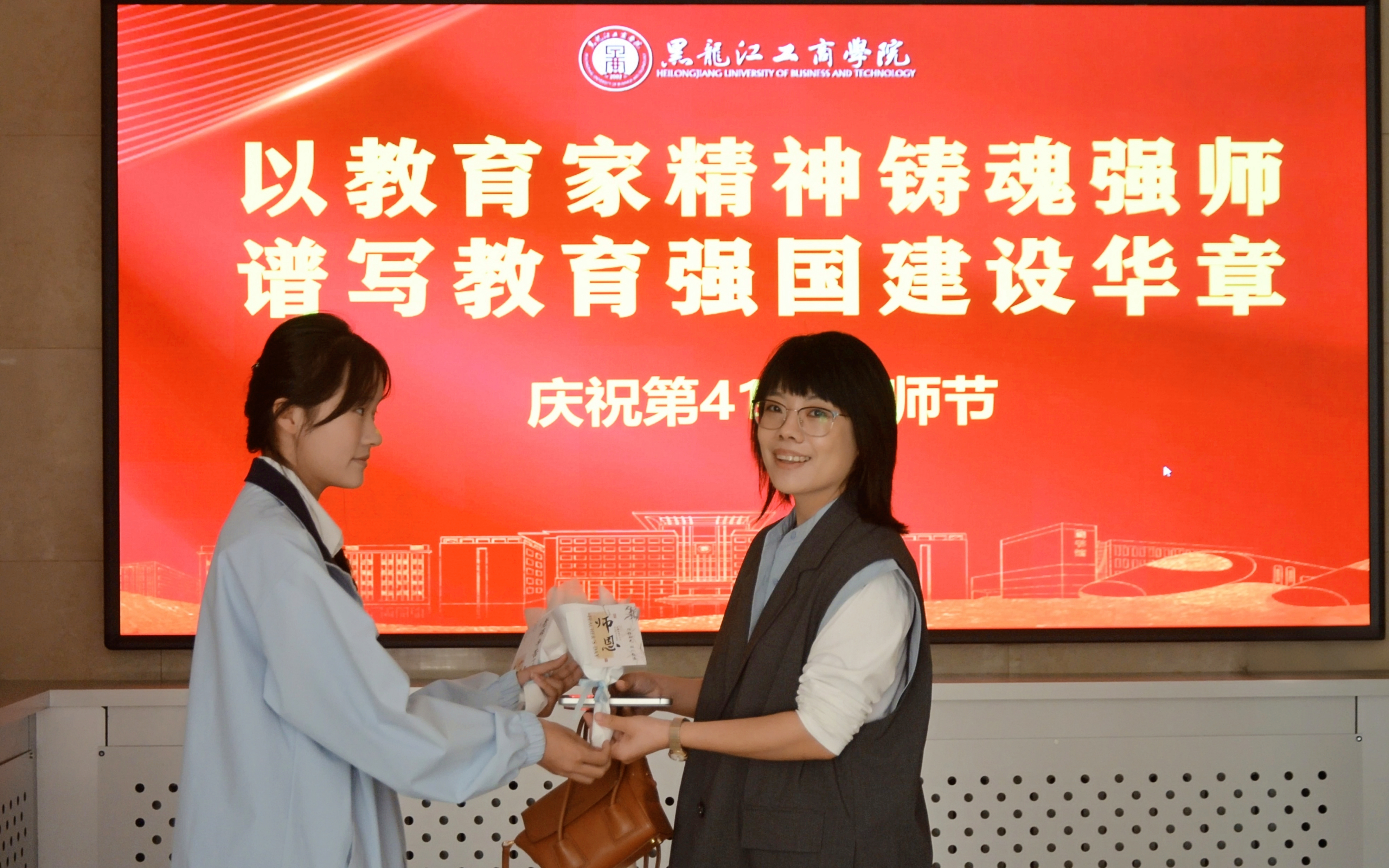 在第41个教师节到来之际,黑龙江工商学院的校园里,处处流淌着温馨和敬意。学校以“以教育家精神铸魂强师,谱写教育强国建设华章”为主题,举行了一系列有深度、有温度、有情怀的庆祝活动,向每一位辛勤耕耘的教职工,致以最深情的节日问候。