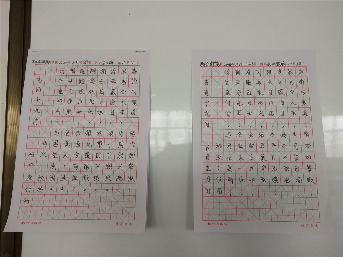此次活动紧紧围绕“读、写、讲、用”中的写,着力提升学生的素养,也是以文化提升学生审美和艺术。同学们纷纷表示,诗书联袂,相得益彰;传统文化,博大精深。以后要坚持抄写诗词,练习书法,砥砺意志,汲取营养,丰盈心灵,为中华文化的传承贡献自己的力量。培养学生良好的学习习惯。(会计系记者站 图/文 宣传部 编辑)