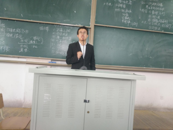 近日,招商证券自兴街营业部在第一教学楼541教室进行了2018年校园宣讲会。招商证券自兴街营业部市场部招聘培训业绩督导负责人赵冰、市场一部区域经理曹志国、市场三部区域经理李可辛,经济系主任赵庆日、辅导员龚鹏出席本次会议,2015级全体同学参加会议。