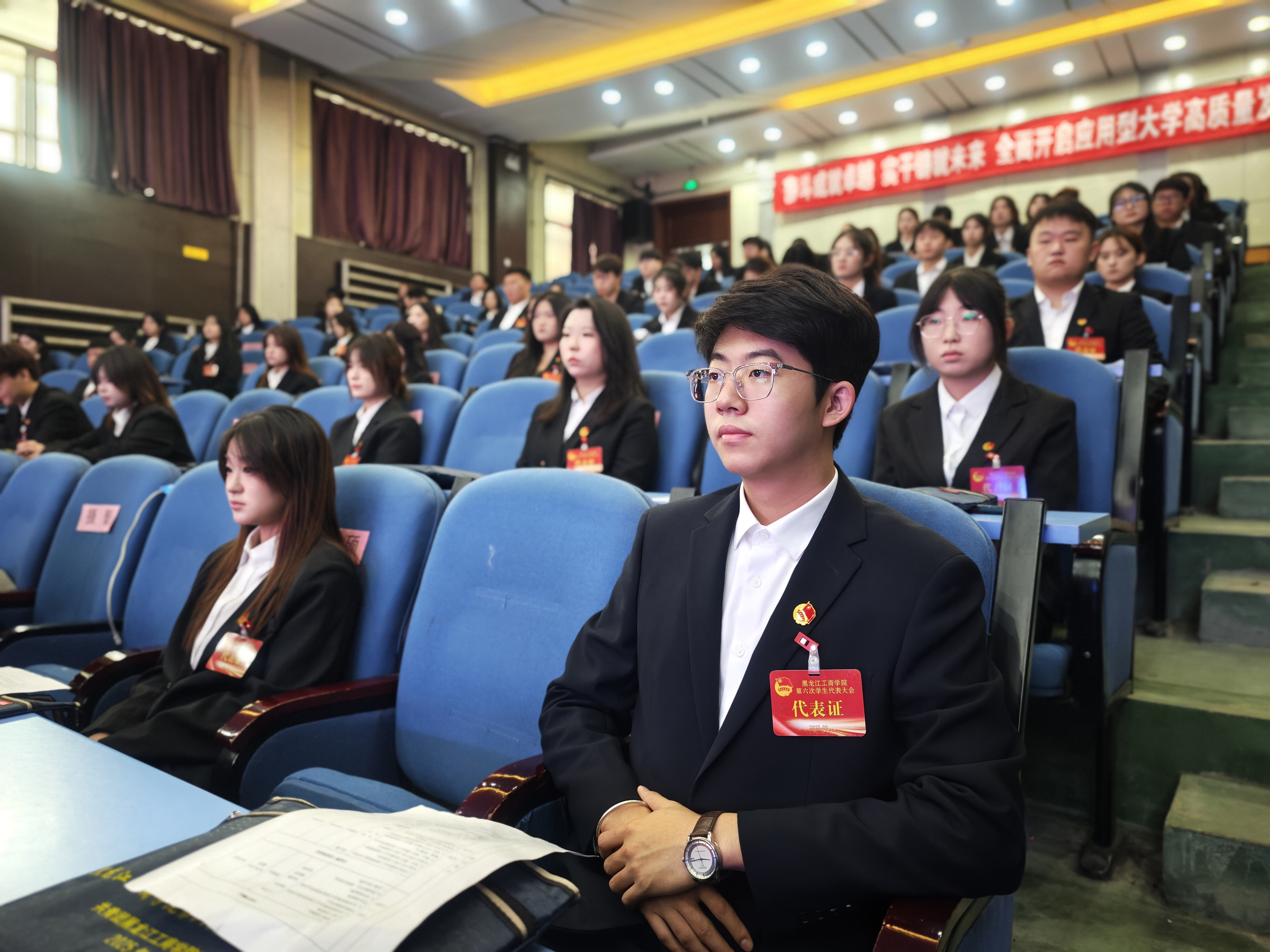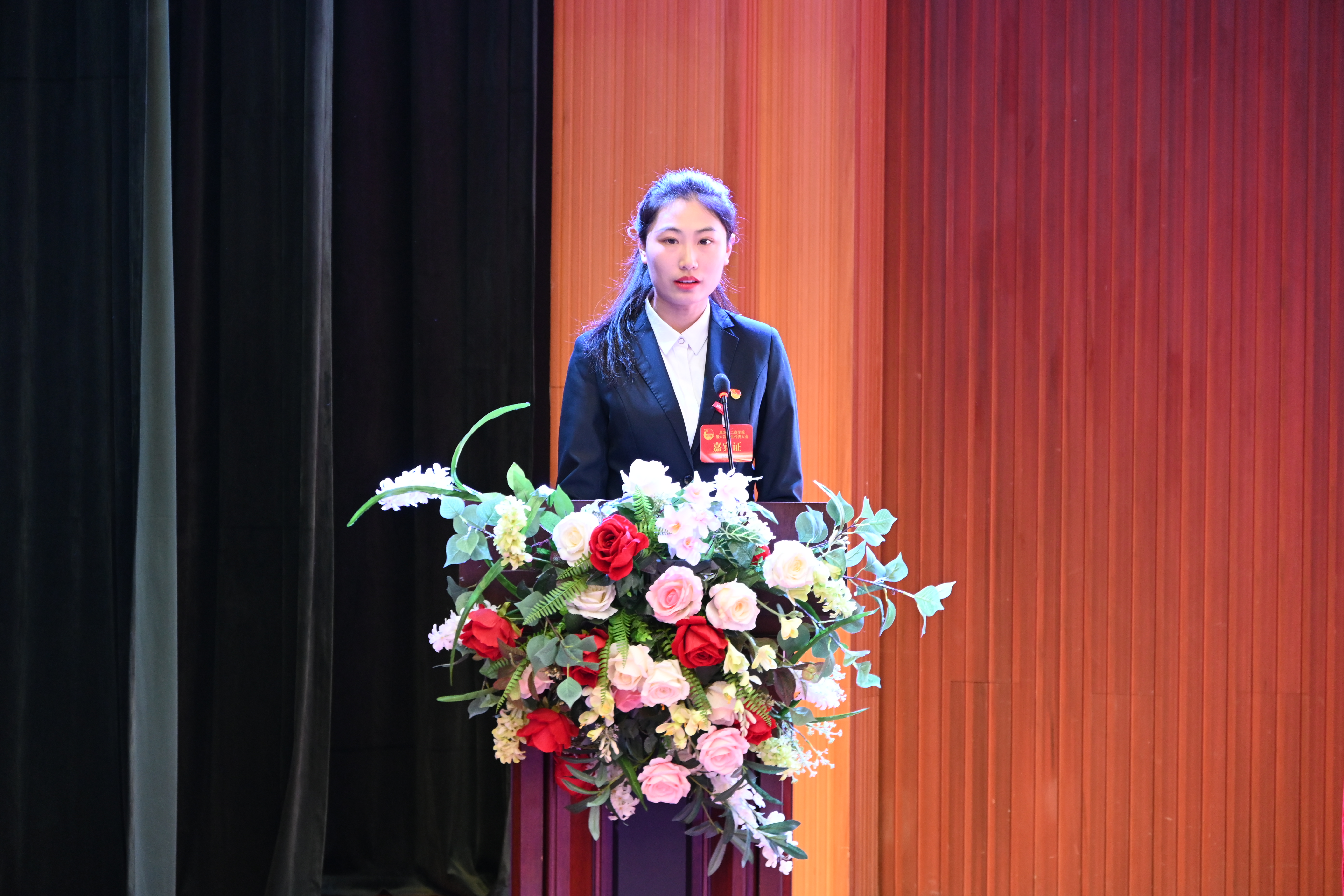 △校学生会主席邢文博同学作《擎旗奋进新征程 挺膺担当谱华章 团结带领全校同学为建设高水平应用型大学贡献青春力量》报告