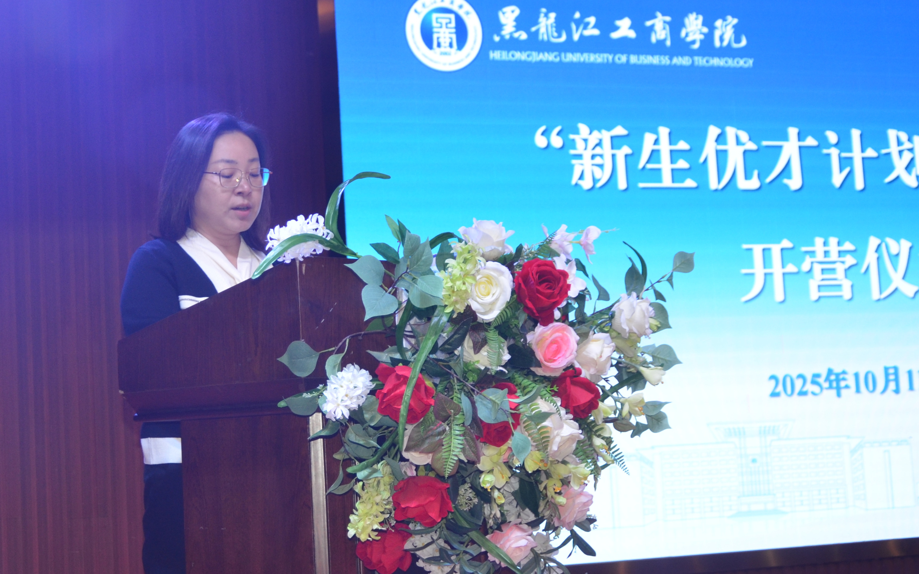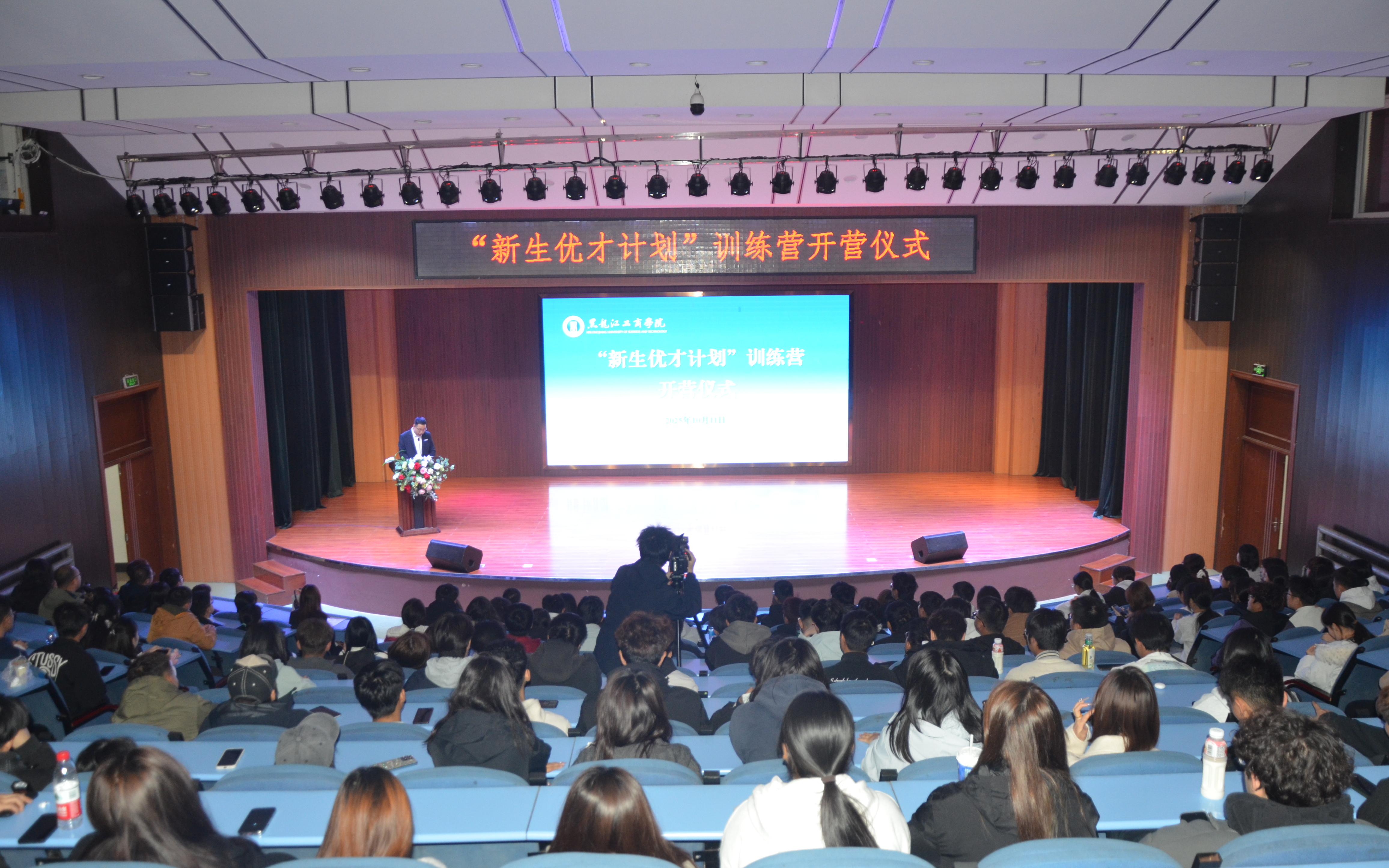 逐梦青春,创享未来。10月11日,我校2025年“新生优才计划”训练营开营仪式在松北校区报告厅举行。副校长邵雪航出席仪式并讲话,仪式由教务处处长李春辉主持。