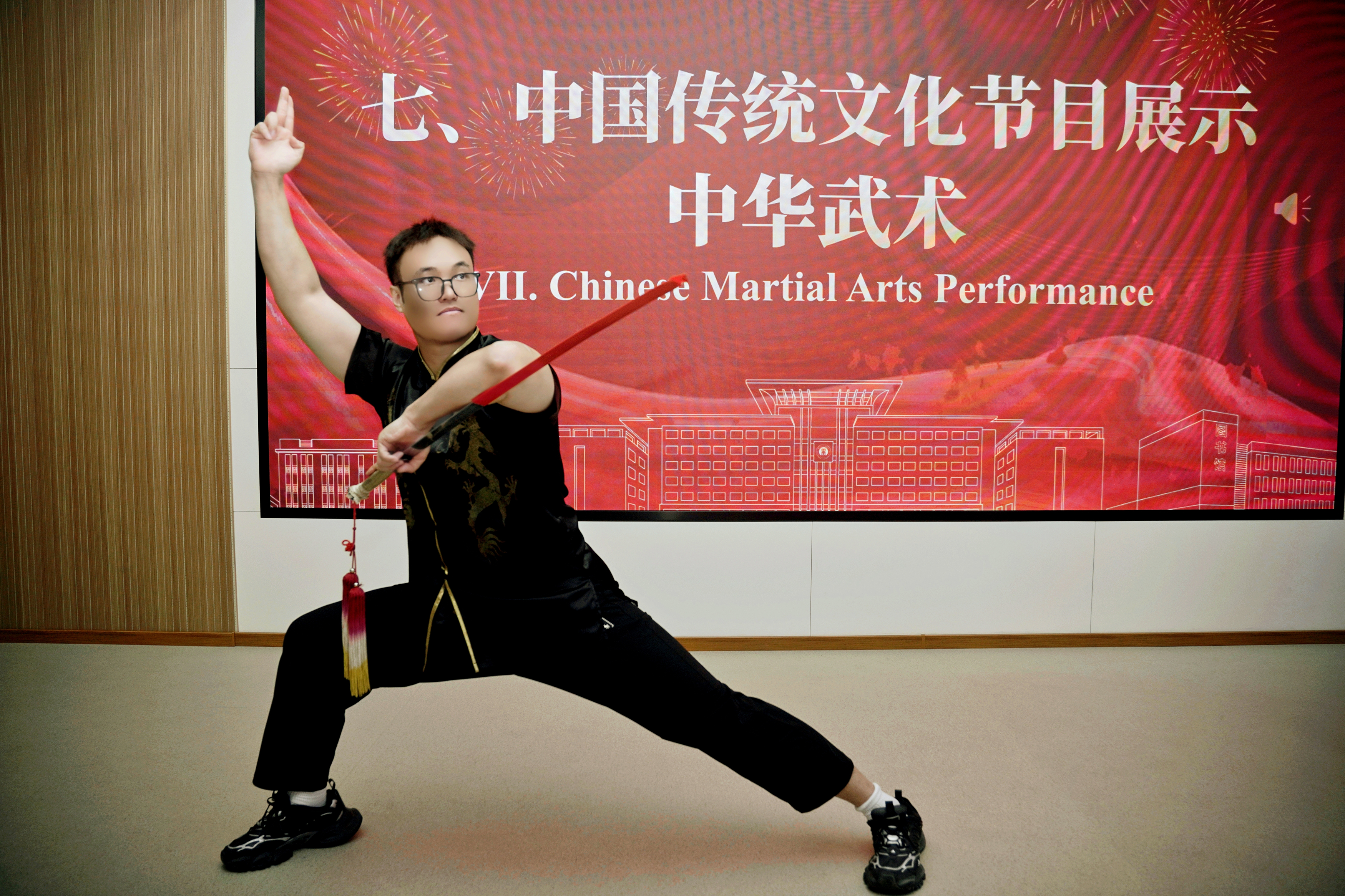 注:通识教育学院教师雷馨茹和花向阳带来中华武术表演