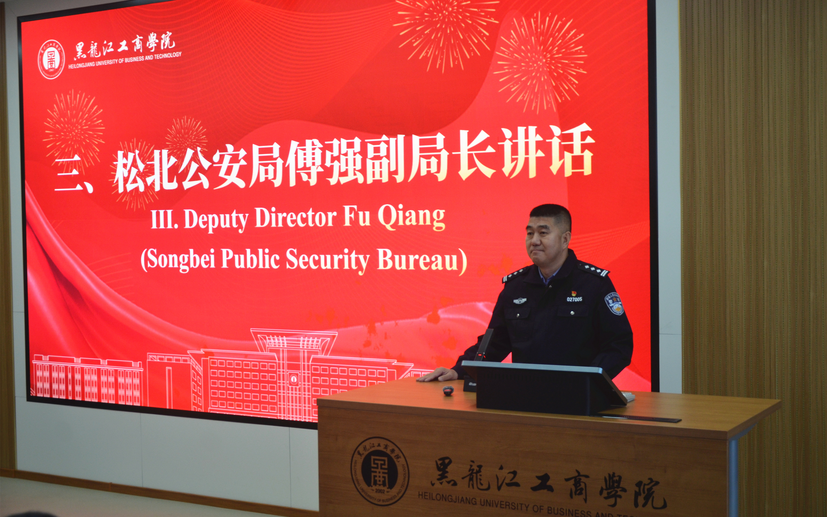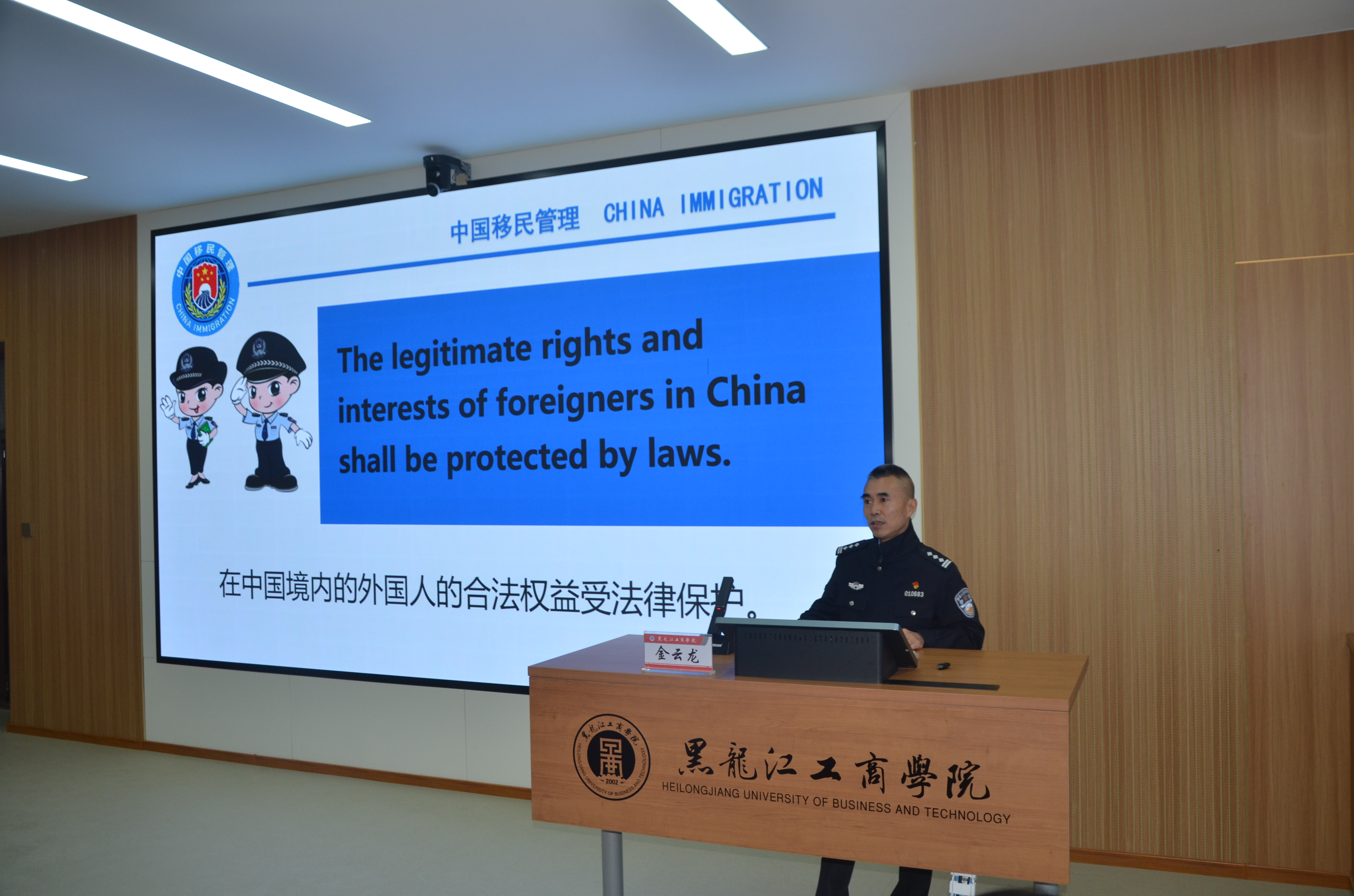开学典礼后,哈尔滨市公安局出入境管理局金云龙警官为全体国际学生带来了详尽的入学安全教育和法律法规讲座。