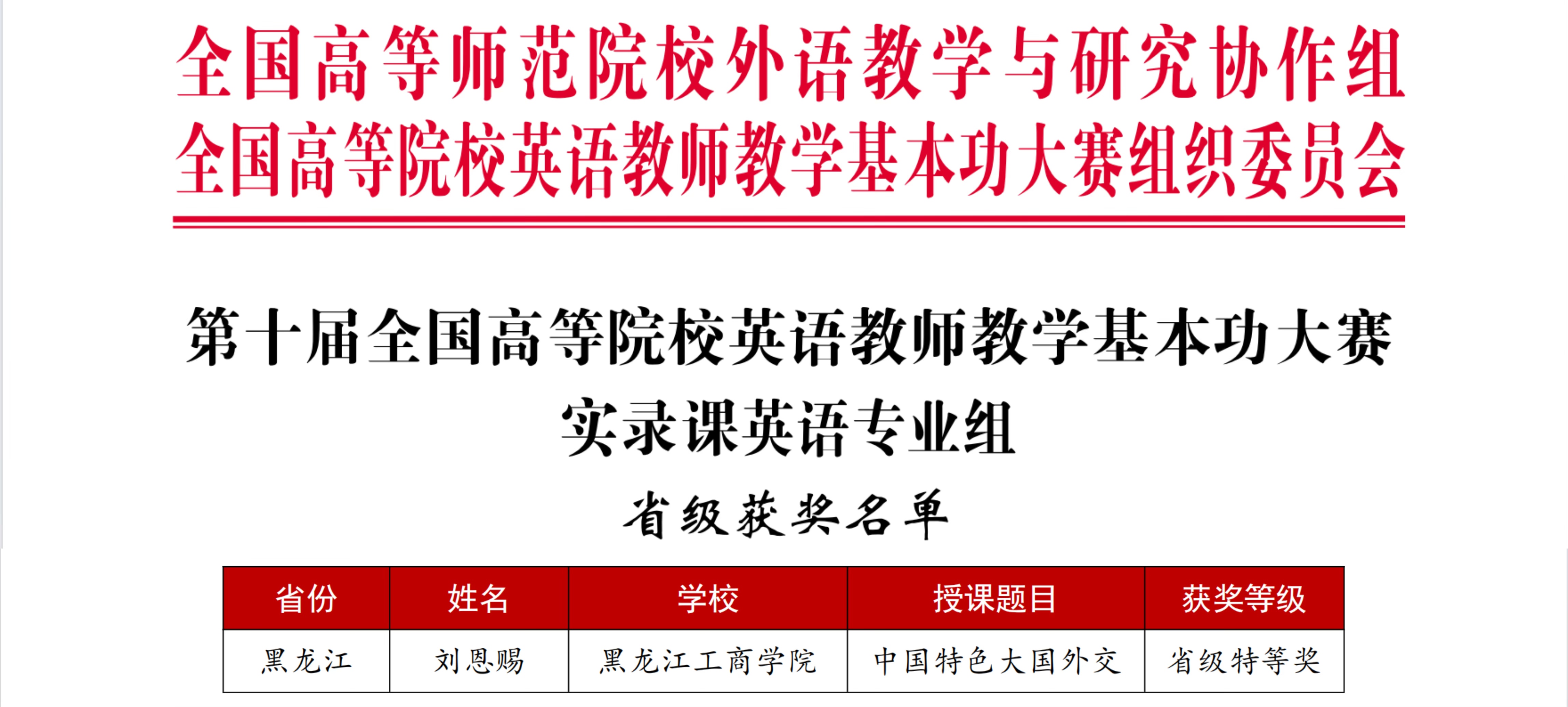 近日,2025年第十届全国高等院校英语教师教学基本功大赛圆满落幕。我校外国语学院教师刘恩赐凭借扎实的教学功底、独具创意的教学设计和娴熟的数字化教学运用能力,从众多参赛教师中脱颖而出,荣获实录课英语专业组省级特等奖。