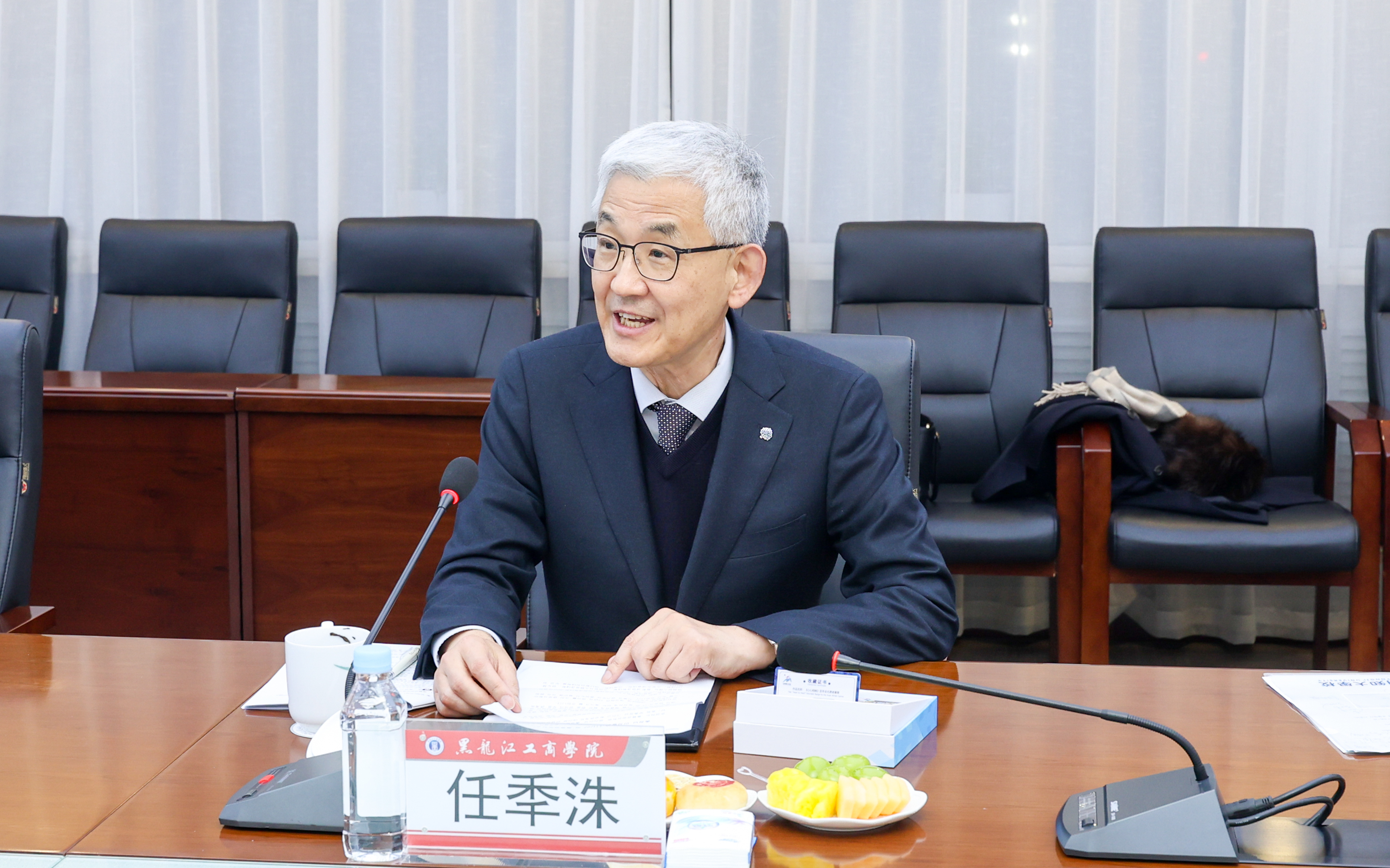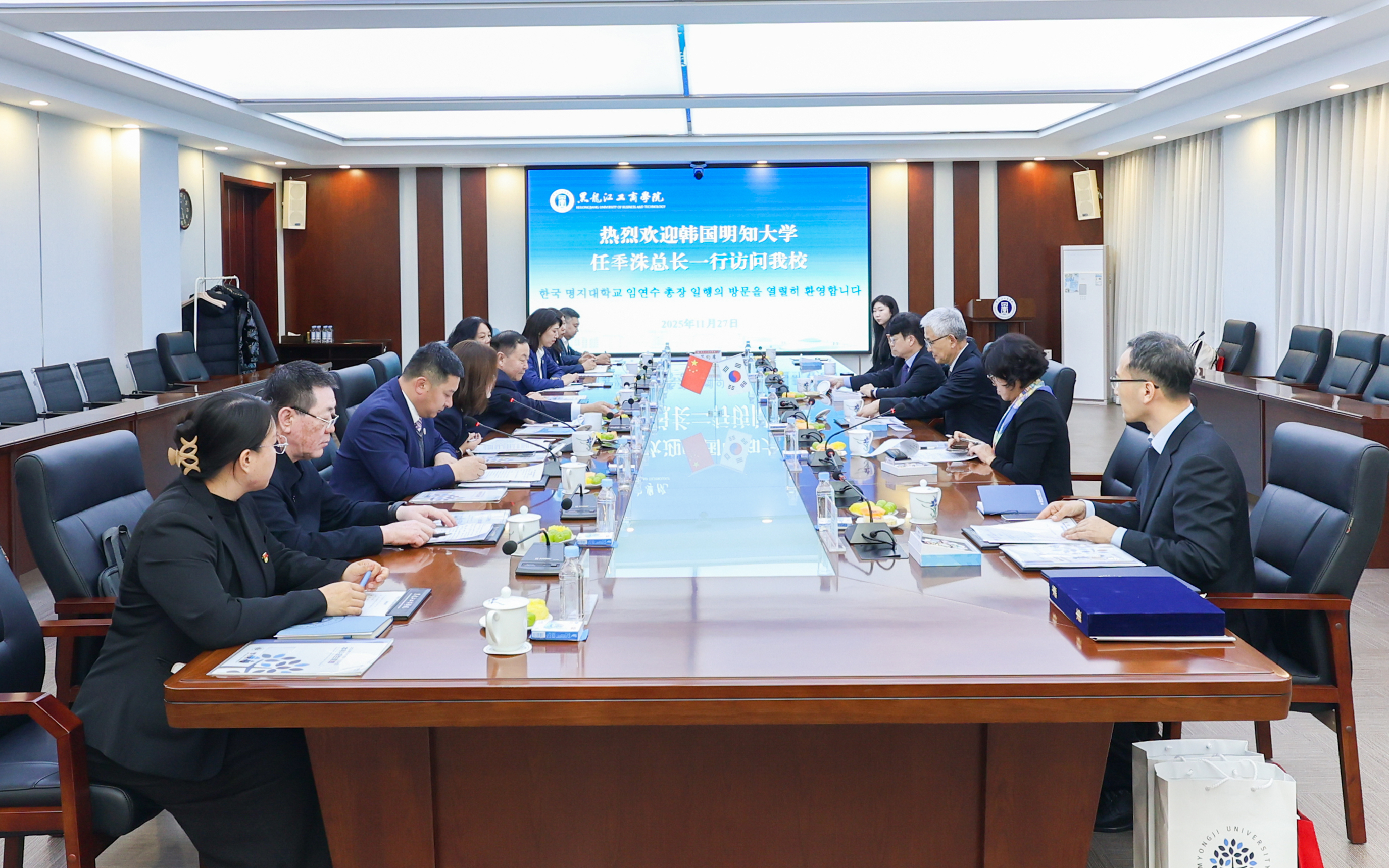 任秊洙肯定了我校在应用型人才培养和国际化办学方面取得的成果。他介绍了明知大学的办学特色与国际合作经验,表示会进一步深化两校友谊、拓宽合作领域。希望双方能充分发挥各自学科优势,加强学术研讨、科研项目联合攻关、中韩文化交流互鉴等方面合作,携手提升办学水平。