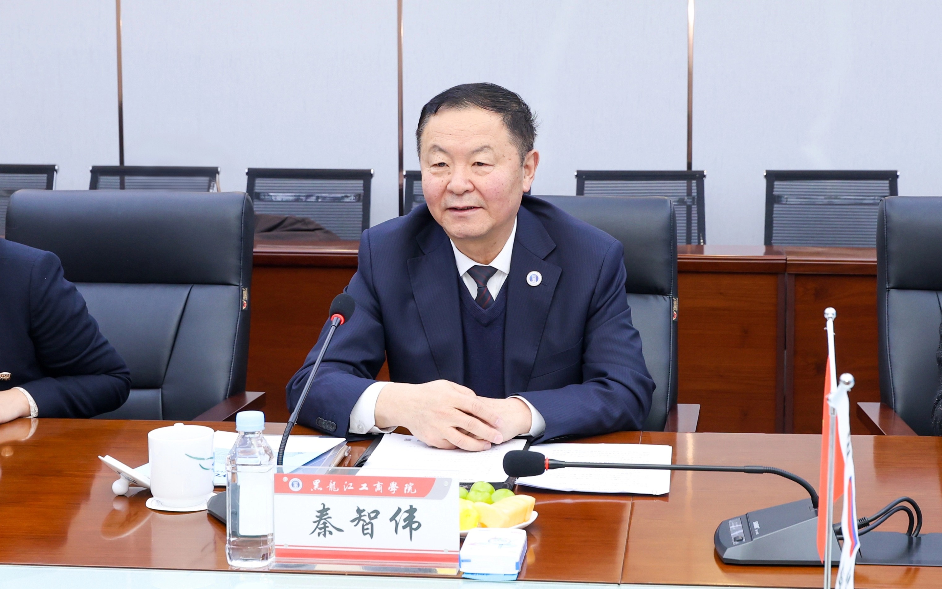 秦智伟对任秊洙校长一行的到访表示热烈欢迎,详细介绍了我校办学定位、专业优势和国际化发展战略。他指出,学校始终秉持“开放融合,协同发展”的国际化办学理念,积极拓展全球合作网络,已加入中美人才培养121计划、中俄大学联盟等多个国际教育平台。希望双方在专业共建、师资交流和学生联合培养等方面开展务实合作,共同培养具备全球胜任力的高素质人才,为中韩高等教育合作注入新活力。