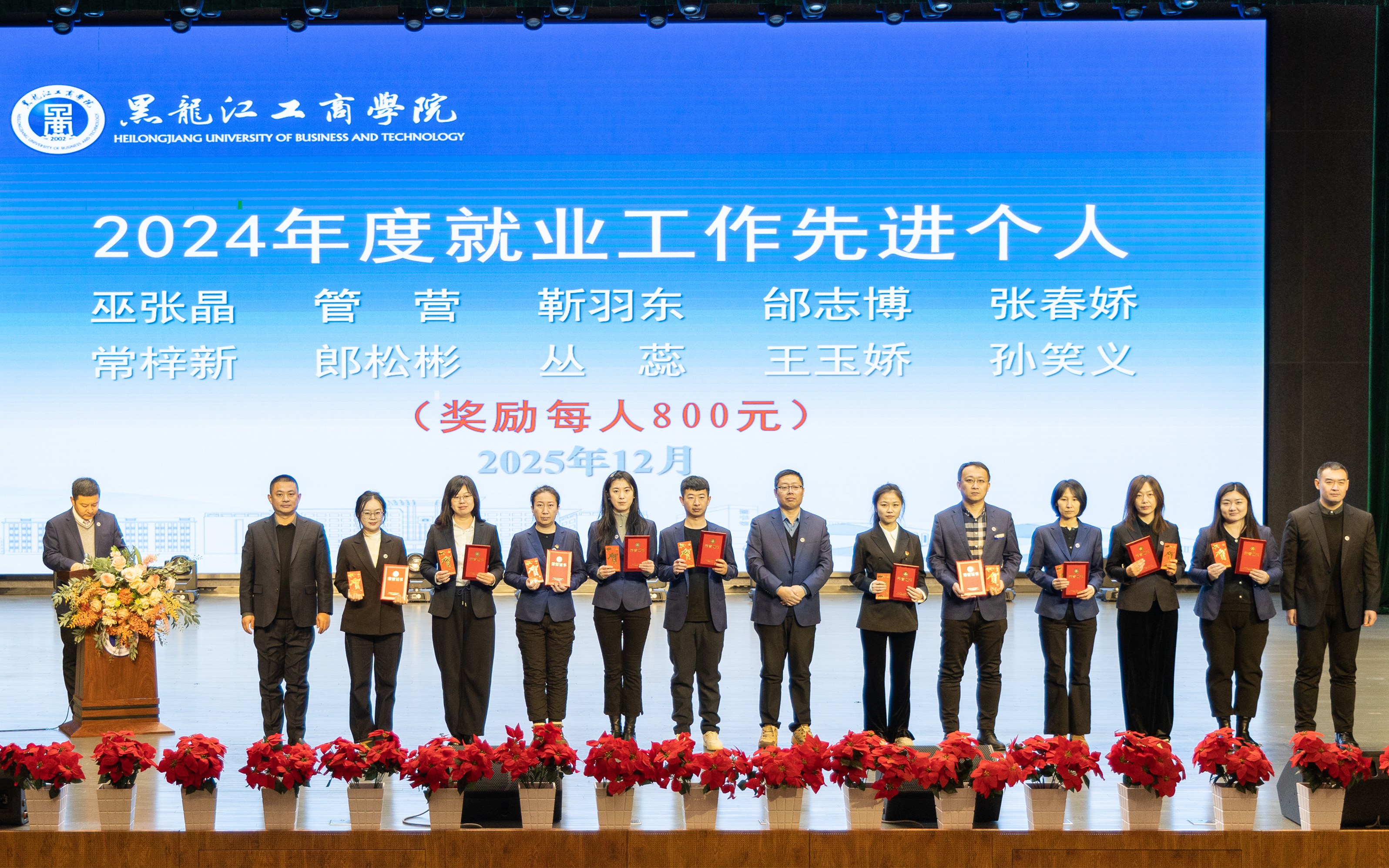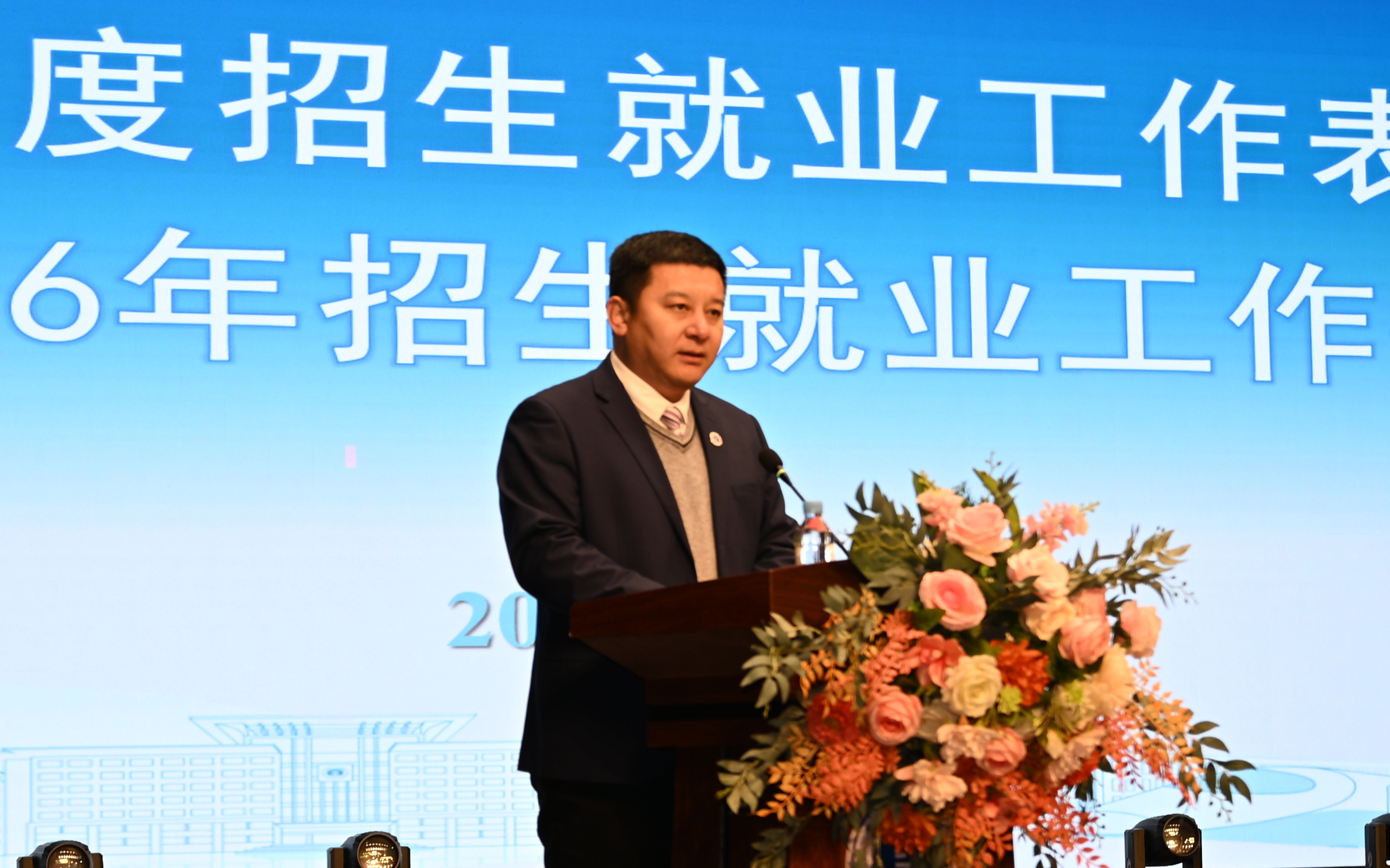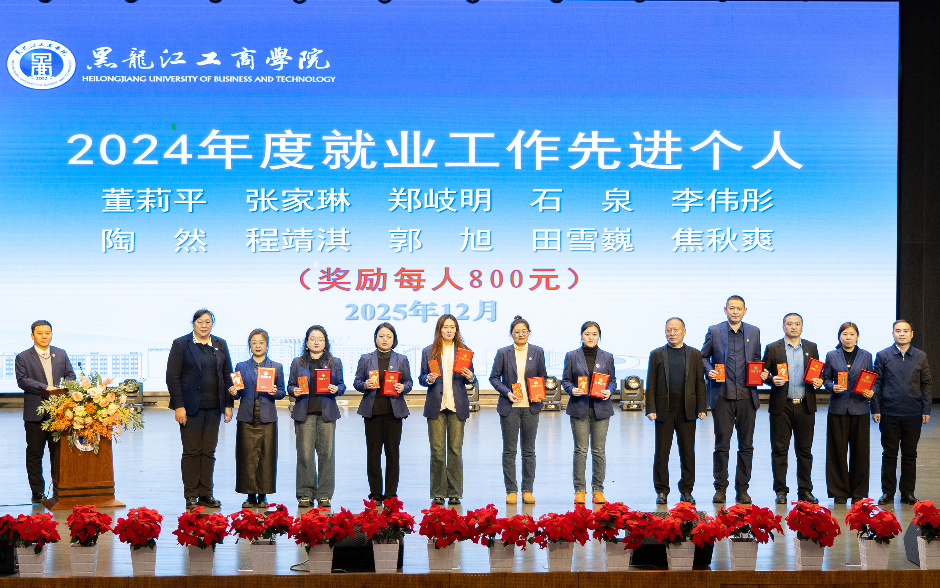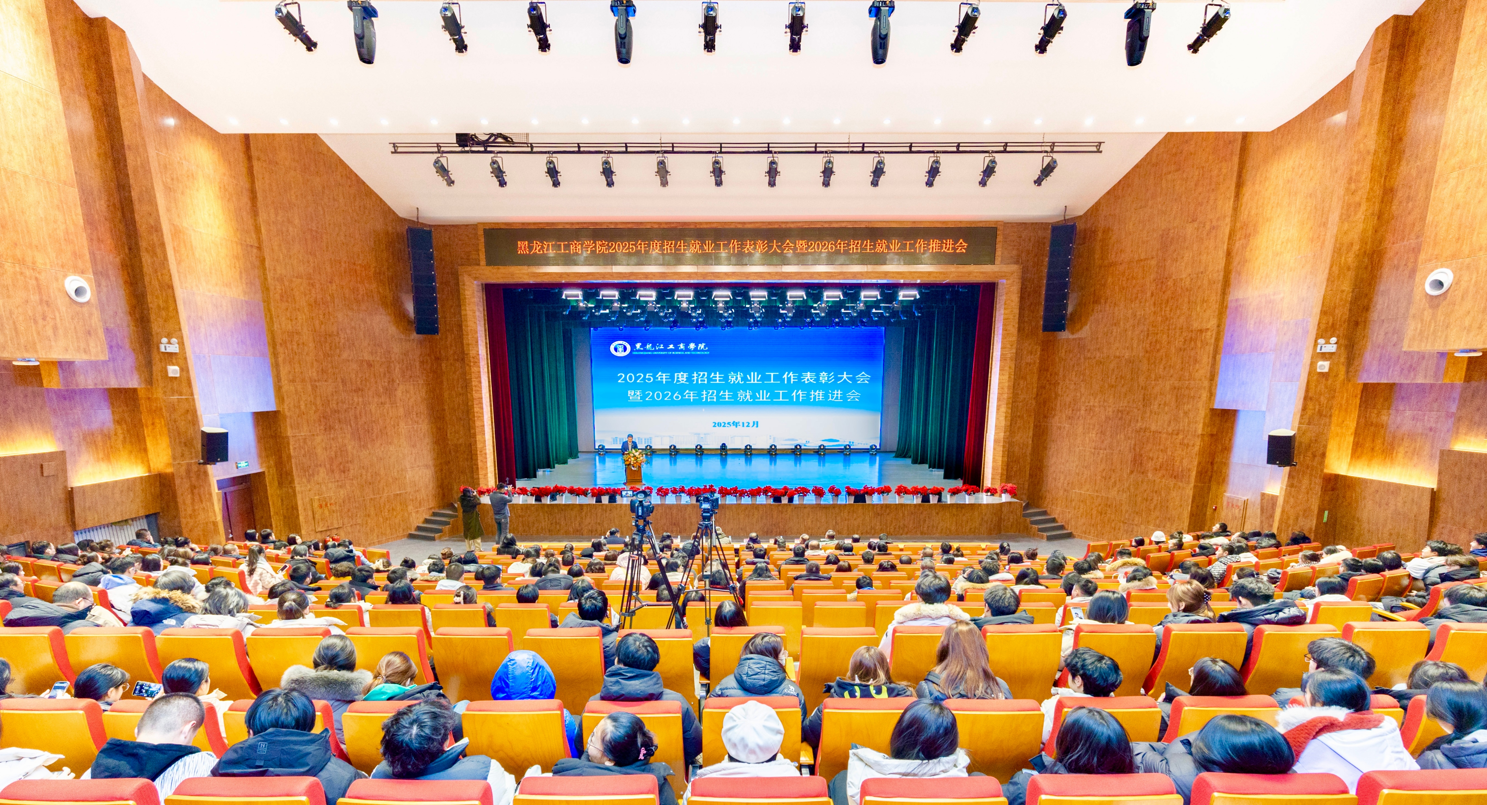 12月10日,我校在哈南校区成栋礼堂召开2025年度招生就业工作表彰大会暨2026年招生就业工作推进会,总结经验、研判形势、表彰先进,动员部署2026年招生就业工作。校长刘来祥出席会议并讲话,党委书记陈冬梅宣读表彰决定,会议由党委副书记、副校长张幸刚主持。