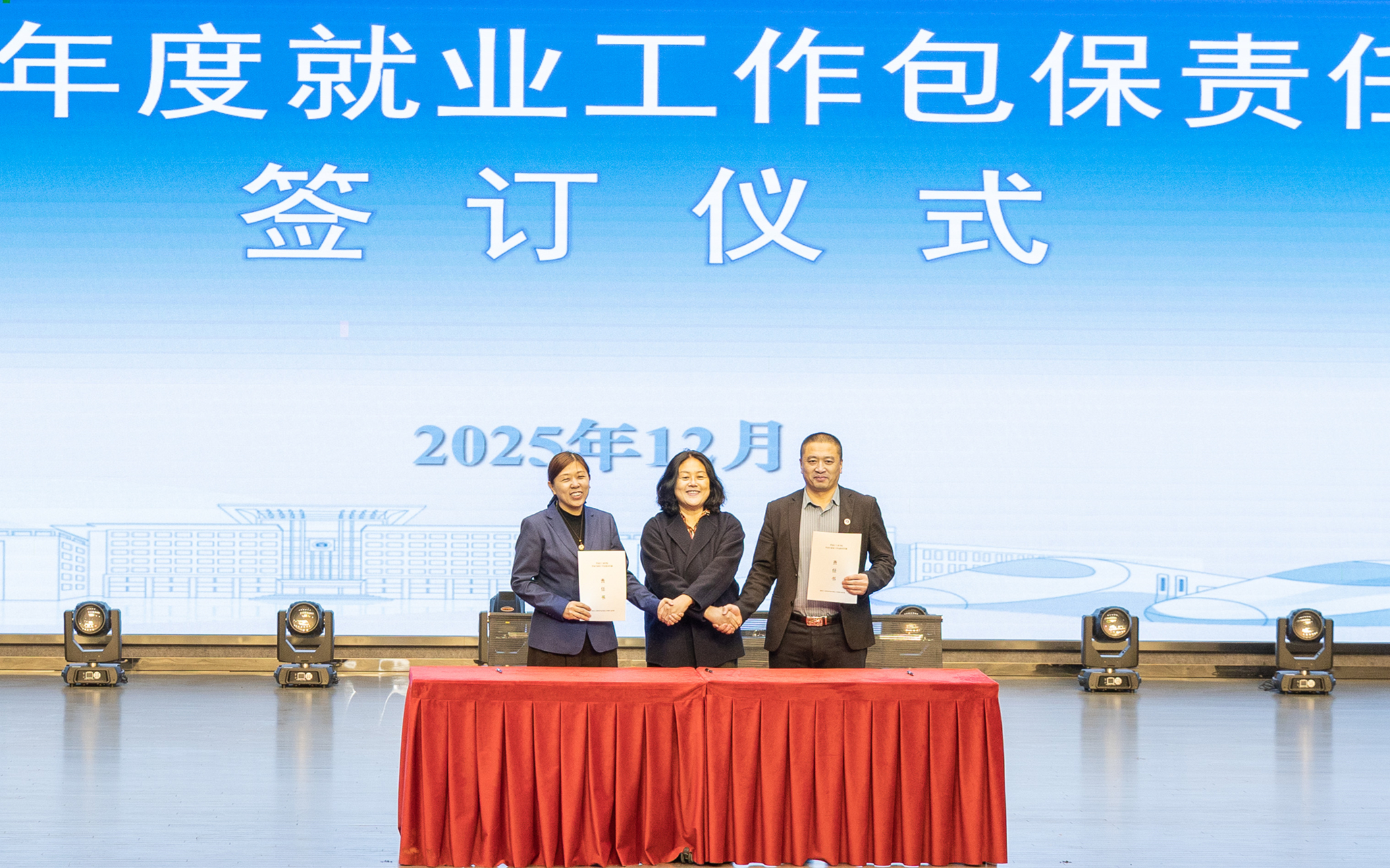 广泛参与,共谋发展;表彰先进,激励担当作为。会议听取了副校长邢兆荣关于2025年招生就业工作情况及奖励方案的汇报;集中表彰2025年度招生工作先进集体、2024年度就业工作先进集体及个人。校领导还与二级学院签订了就业工作包保责任书,进一步明确目标任务,压紧压实责任链条。