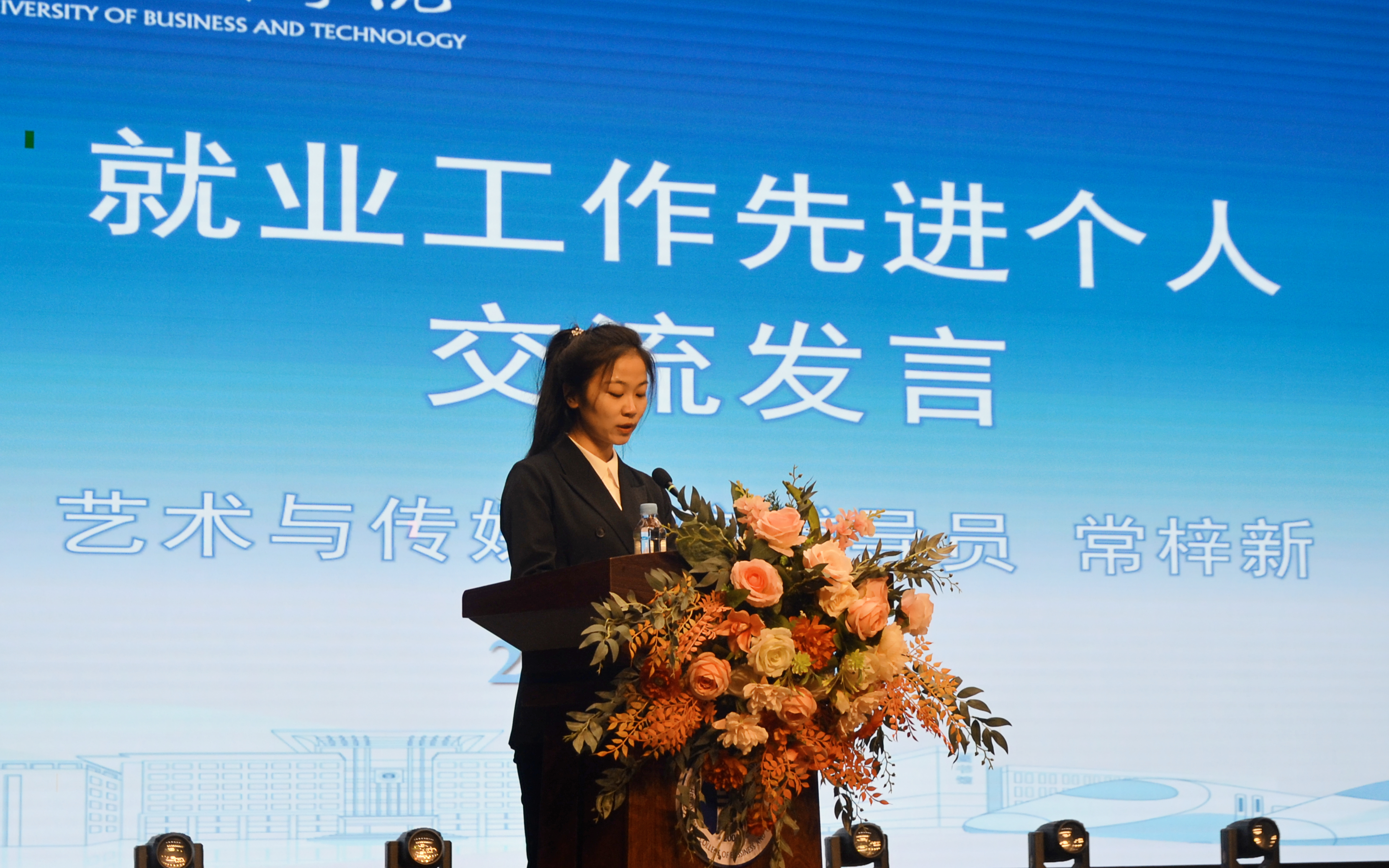 会上,商学院院长张家琳、智能制造与交通工程学院党总支书记蔡秀丽、艺术与传媒学院辅导员常梓新分别代表招生工作先进集体、就业工作先进集体、就业工作先进个人发言。