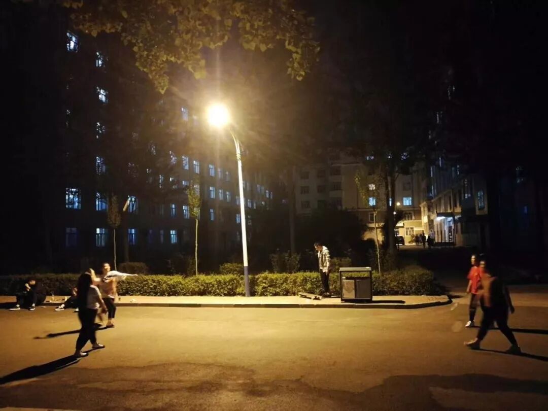 傍晚,同学们在操场上玩耍在自习室中奋斗