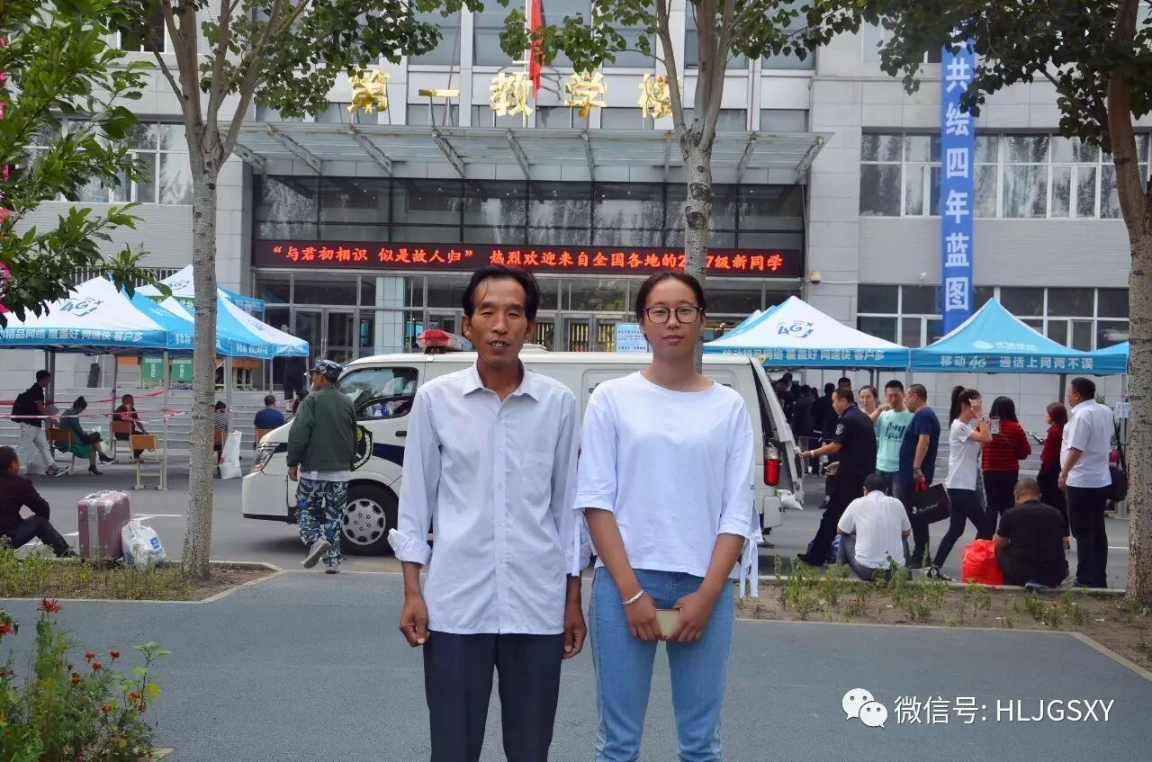 来自新疆博尔塔拉蒙古族自治州的何娜与父亲是在教学楼前合影。他的父亲说,儿行何止是千里。从此,黑龙江就是我们的第二家乡了!盼孩在这里生活愉快!