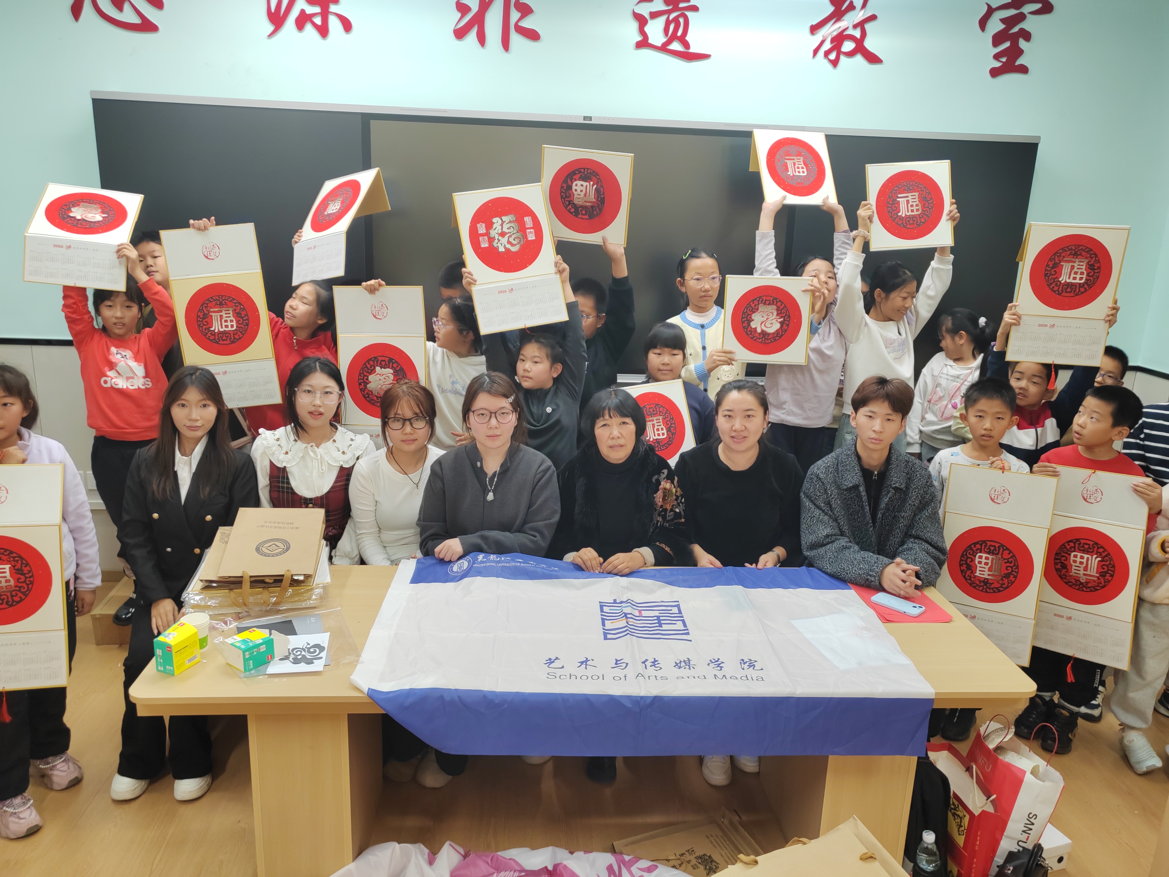 近日,艺术与传媒学院艺脉创薪社联合逸夫小学开展“鱼皮承古韵·匠心润童年”赫哲族鱼皮画公益体验活动。活动特邀赫哲族鱼皮画非遗大师亲临指导,艺脉创新社师生团队全程助力,近百名小学生在“大师+师生”的双重引导下,沉浸式感受非遗技艺的魅力与黑龙江地域文化的底蕴。