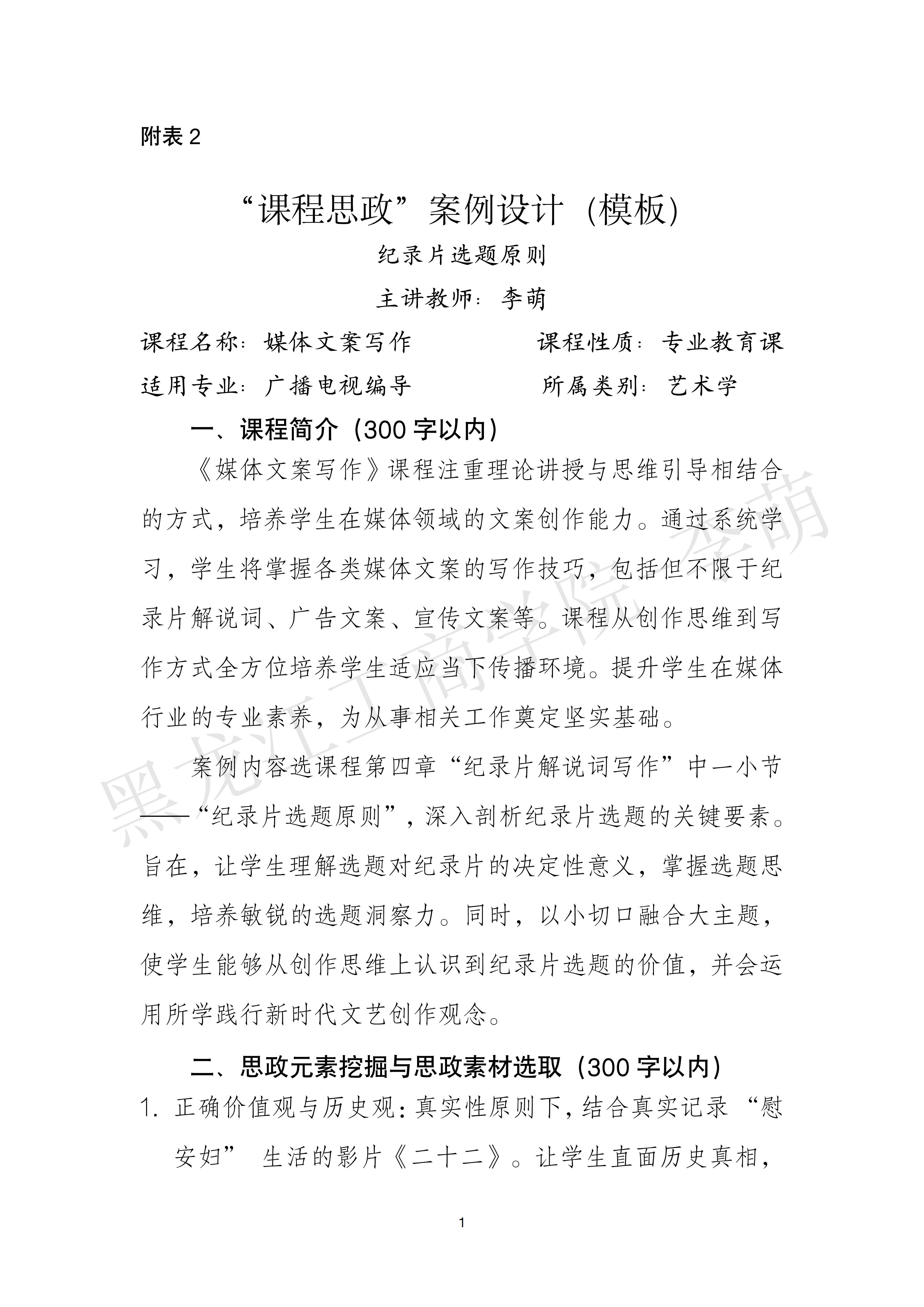 黑龙江工商学院课程思政优秀案例:李萌-媒体文案写作案例