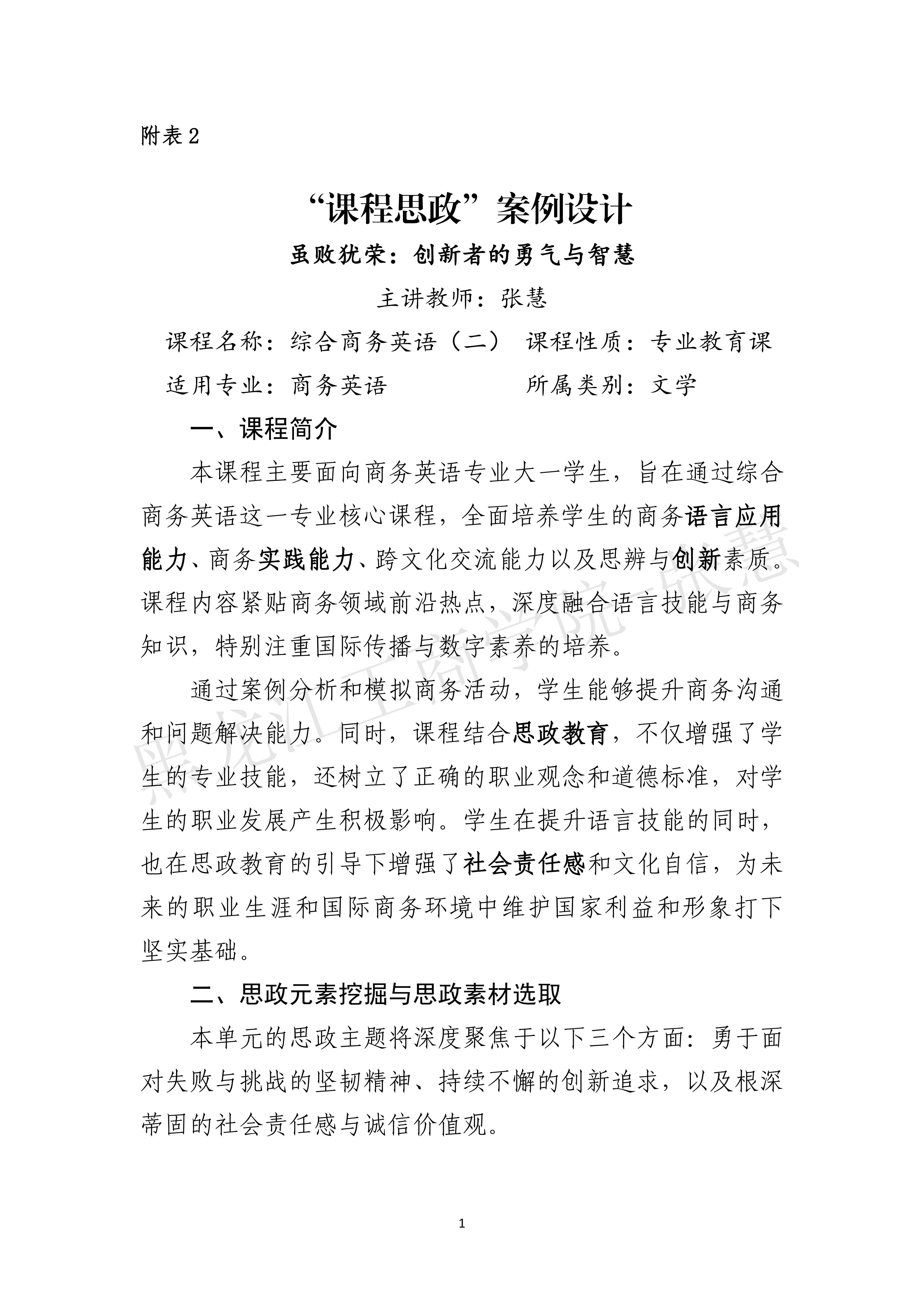 黑龙江工商学院课程思政优秀案例:张慧-综合商务英语(二)案例