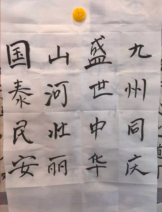 这场活动不仅展现了书法艺术的独特魅力,更极大地激发了同学们的爱国热情。大家以笔为媒介,以墨传递真情,将心中的祝福与赞美凝练成一幅幅生动的书法作品,为祖国母亲献上了一份别具一格的生日礼物。每一笔、每一划都饱含着对祖国的无尽深情,让人深切感受到中华文化的博大精深与同学们的爱国之情。