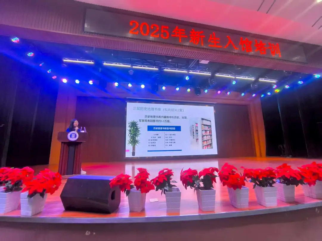 松北校区则于9月8日、9月25日同步推进三场培训,由唐明、李东蕴两位老师负责讲解。从图书馆的发展历史、楼层功能区划分,到馆藏目录检索技巧、知网等电子数据库的使用方法,再到图书借还细则、自习区预约流程,老师们通过图文结合的教程演示,将复杂的使用要点转化为直观易懂的讲解,助力新生轻松、快速掌握图书馆使用技能。