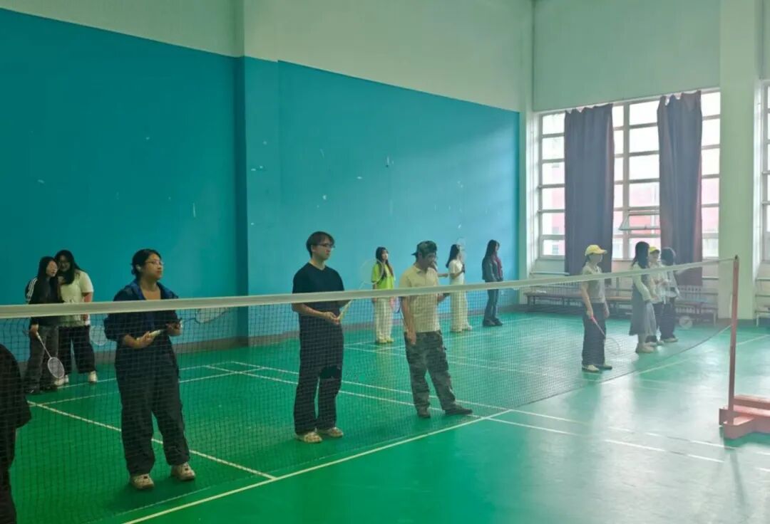 本次活动以“规范正手击球动作”为核心,由授课教师先示范握拍、引拍、击球(击球点在身体侧前方,随挥至肩上)完整流程;随后同学分组进行固定球练习,授课教师逐一纠正动作偏差,重点解决“击球点过低”“挥拍不连贯”问题。聚焦“反手挑球”技术,先讲解动作要点,再通过“半区挑球训练”,强化反手发力稳定性,针对力量不足的同学,指导通过蹬腿转体辅助发力。围绕“前场上网步法”展开,授课教师示范“启动步→跨步→回位流程;随后设置3个前场标志点,同学依次移动至各点接球,每组15次,提升步法灵活性与衔接速度,避免“只伸手不迈步”的错误习惯。开展“2V2攻防模拟”,要求防守方以挑高球为主,进攻方以杀球、吊球反击;授课教师实时暂停指导,强调“防守时判断球路”“进攻时观察对手站位”,引导同学根据场上情况调整策略,避免盲目击球。授课结束后,授课教师结合典型进行复盘,肯定同学技术运用进步,指出需改进方向。
