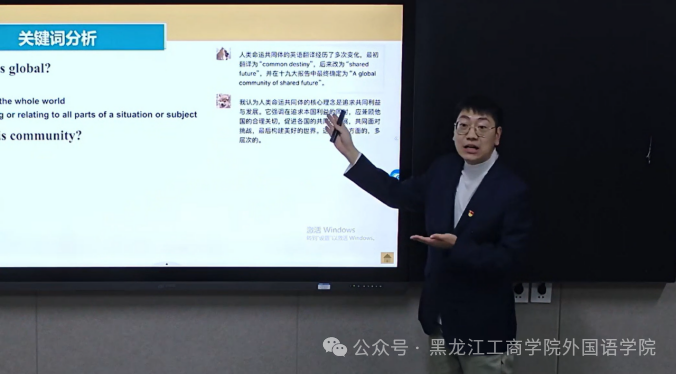 刘恩赐老师主讲的《理解当代中国—汉英翻译》课程,以“中国特色大国外交”为主题,以“人类命运共同体”为关键词切入,采用线上线下混合式教学模式,实现AI技术对“课前讨论—课中讲授—课后总结”全流程的有效赋能,助力学生深入理解“一带一路”的时代内涵与中国特色大国外交的重要成就。在教学过程中,刘老师注重激发学生学习兴趣,坚持以学生为中心,精心设计教学创新点与亮点,为学生更好地讲述中国故事提供了有力支撑。