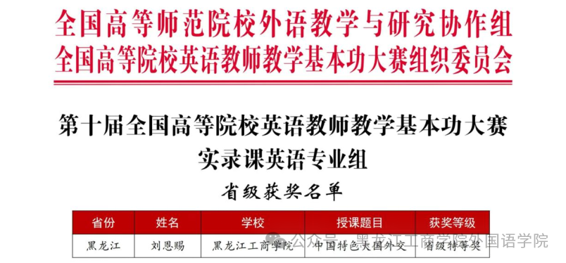 此次获奖不仅是对我院教师个人教学能力的高度认可,也充分体现了我院在英语学科教学创新、师资队伍建设和综合育人体系建设方面的扎实成效,彰显了学院在区域高校外语教育领域的示范引领作用。未来,学院将继续坚守育人初心,强化教师队伍建设,深化教学改革创新,为培育新时代高素质外语人才贡献力量。
