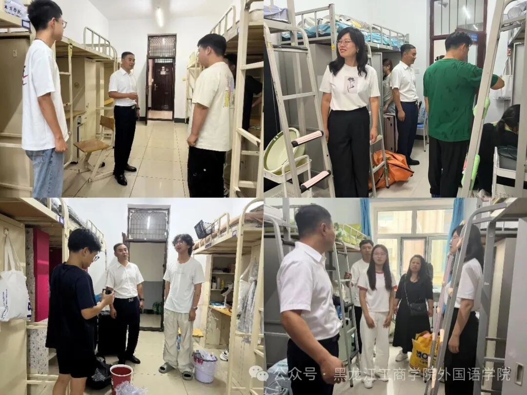 9月1日15:20校纪委书记、工会主席兼外国语学院党总支书记慎海歌、外国语学院院长巫张晶及新生辅导员宫瑜良走访新生寝室,每走进一间寝室都与新生们亲切交流,仔细查看宿舍环境,询问生活用品是否齐全,提醒同学们要注意宿舍安全,鼓励大家相互关心、相互帮助,共同营造一个温馨和谐的宿舍氛围。
