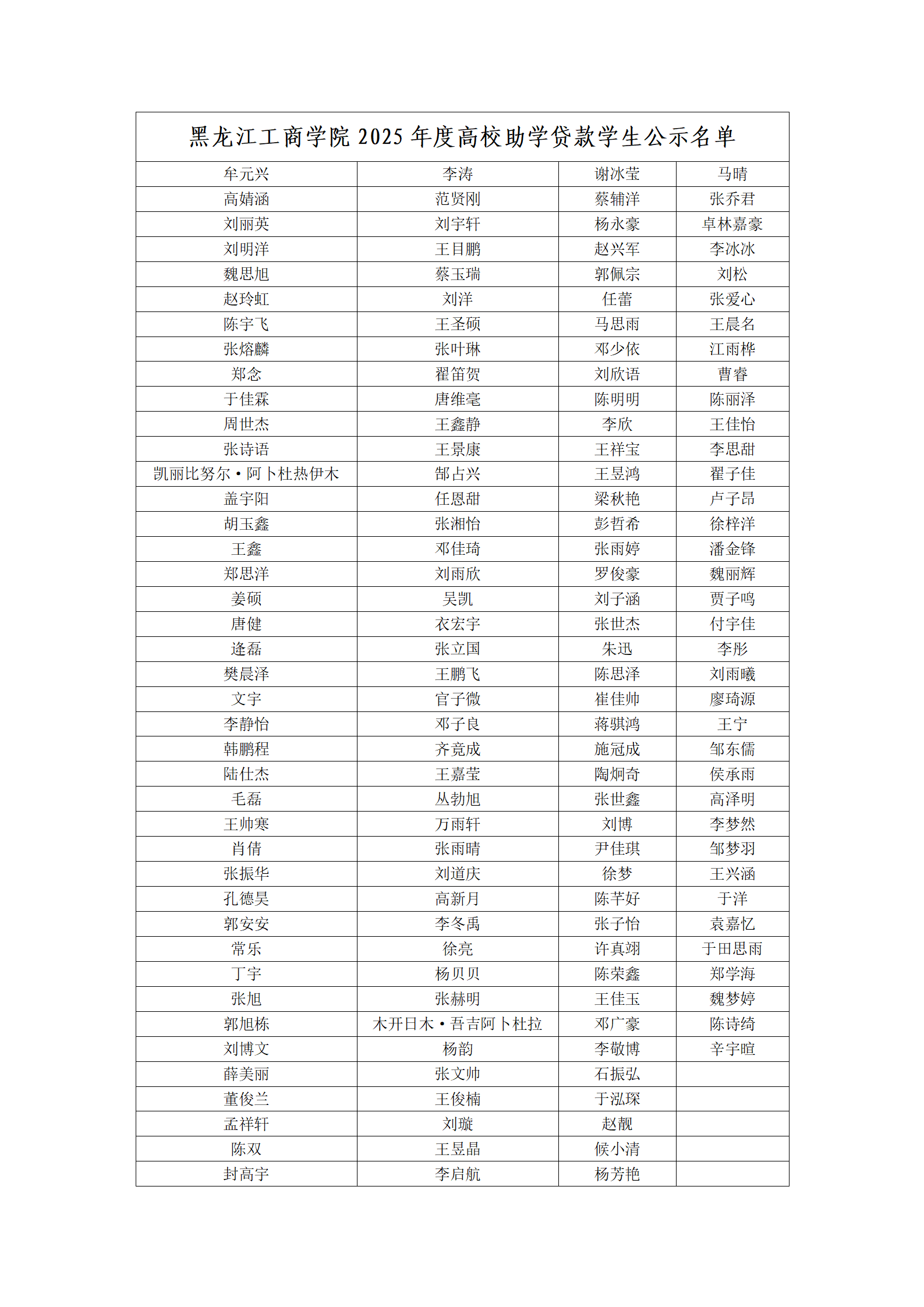 一、黑龙江工商学院2025年度高校助学贷款学生公示名单(名单详见附件)
