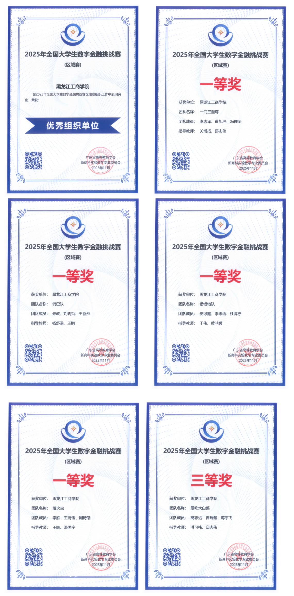 (图为2025年数字金融挑战赛区域赛获奖证书)