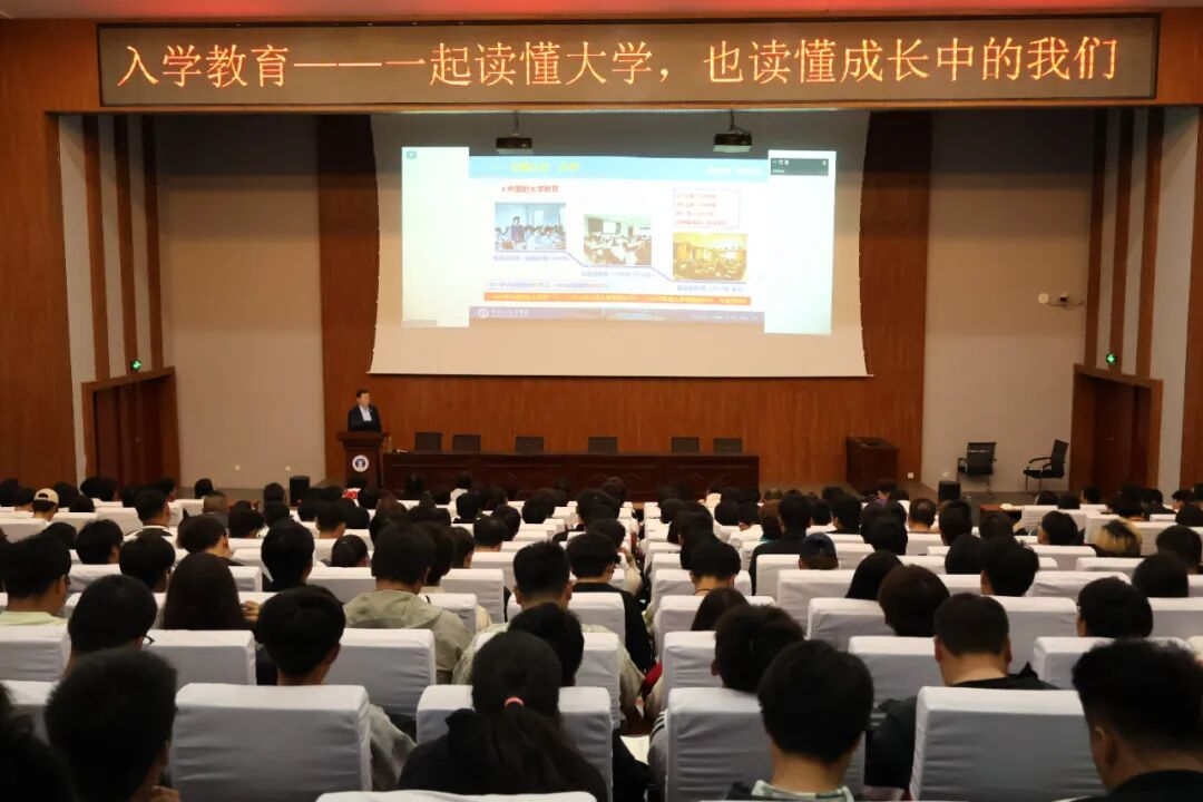 秦智伟博士以生动亲切的语言开启讲座。他结合自身丰富的教育经历与人生感悟,围绕“正确认识‘大学’”、“认识我们的大学”、“老教师的几点忠恳建议”、“共同畅想未来”四个维度,与新生们展开深入交流。在谈及对新生的期望时,秦智伟博士提出“4343倡议”,引发新生强烈共鸣。第一,应做到“四个转变”:从“单一考分目标”转向“多维成长目标”,除了关注课程成绩,更要在科研实践、社团活动中提升综合能力;从“被动接收知识”转向“主动探索研究”,借助学校图书馆数据库、实验室资源,围绕专业难题开展自主探究;从“家人照料”转向“自我管理”,合理规划作息时间、财务支出,学会独立处理生活琐事;从“固定圈层”转向“多元社交”,积极参与跨专业交流活动,结识不同领域伙伴,拓展视野格局。第二,应做好“三个适应”:从“被动执行者”到“主动管理者”,面对学业任务不再等待老师安排,而是主动制定学习进度表,提前预习、课后复盘;从“陌生观望”到“主动熟悉”,开学初期主动走遍校园各个功能区,了解教学楼、食堂、图书馆的位置,积极向学长学姐请教学习生活经验,快速融入校园环境;从“不完美起步”到“归属感”,接纳自己初期在专业学习、社团工作中可能出现的失误,通过一次次实践积累经验,逐渐在班级、社团中找到自己的定位。第三,增强“四自”(4S)能力:自信心(Self-confidence)、自控力(Self-control)、自主学习(Self-learning)、自我提升(Self-improvement),逐渐养成个人的“四自”能力、作风和习惯,最终全面提升个人的“胜任素质”。第四,提升“三商”(3Q):情商、意商、导商,要秉持精益求精的态度,敢于挑战难题、突破自我,不断提升专业技能与综合素质,努力成为适应行业发展需求的高素质人才。